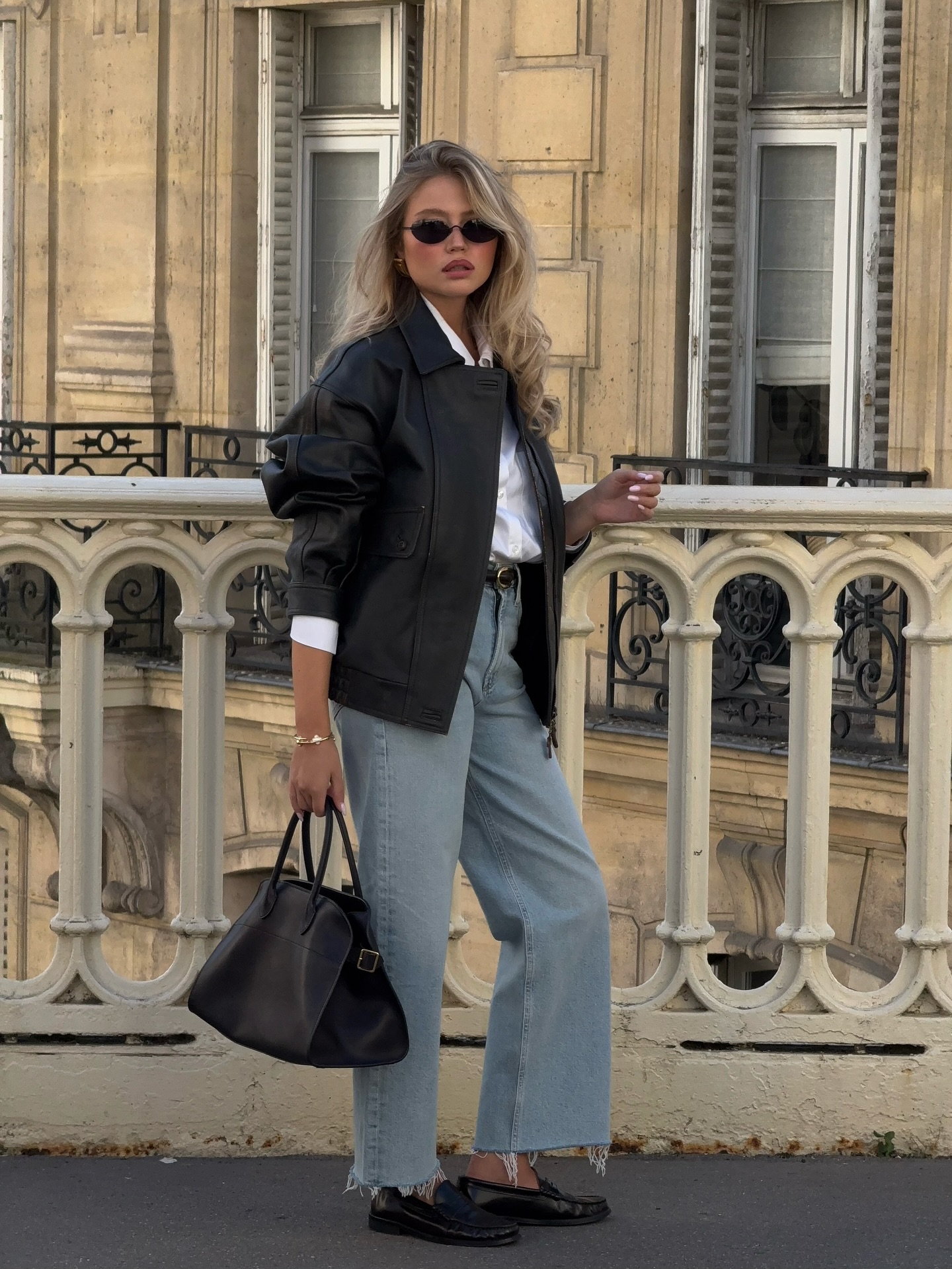 Áo khoác da thường được phối cùng áo thun, quần jeans và giày bệt để tạo nên phong cách casual đặc trưng. Khi muốn nữ tính hơn, phụ nữ Pháp có thể kết hợp áo khoác da với váy hoa hoặc chân váy midi, tạo nên sự tương phản thú vị giữa cứng cáp và mềm mại.
