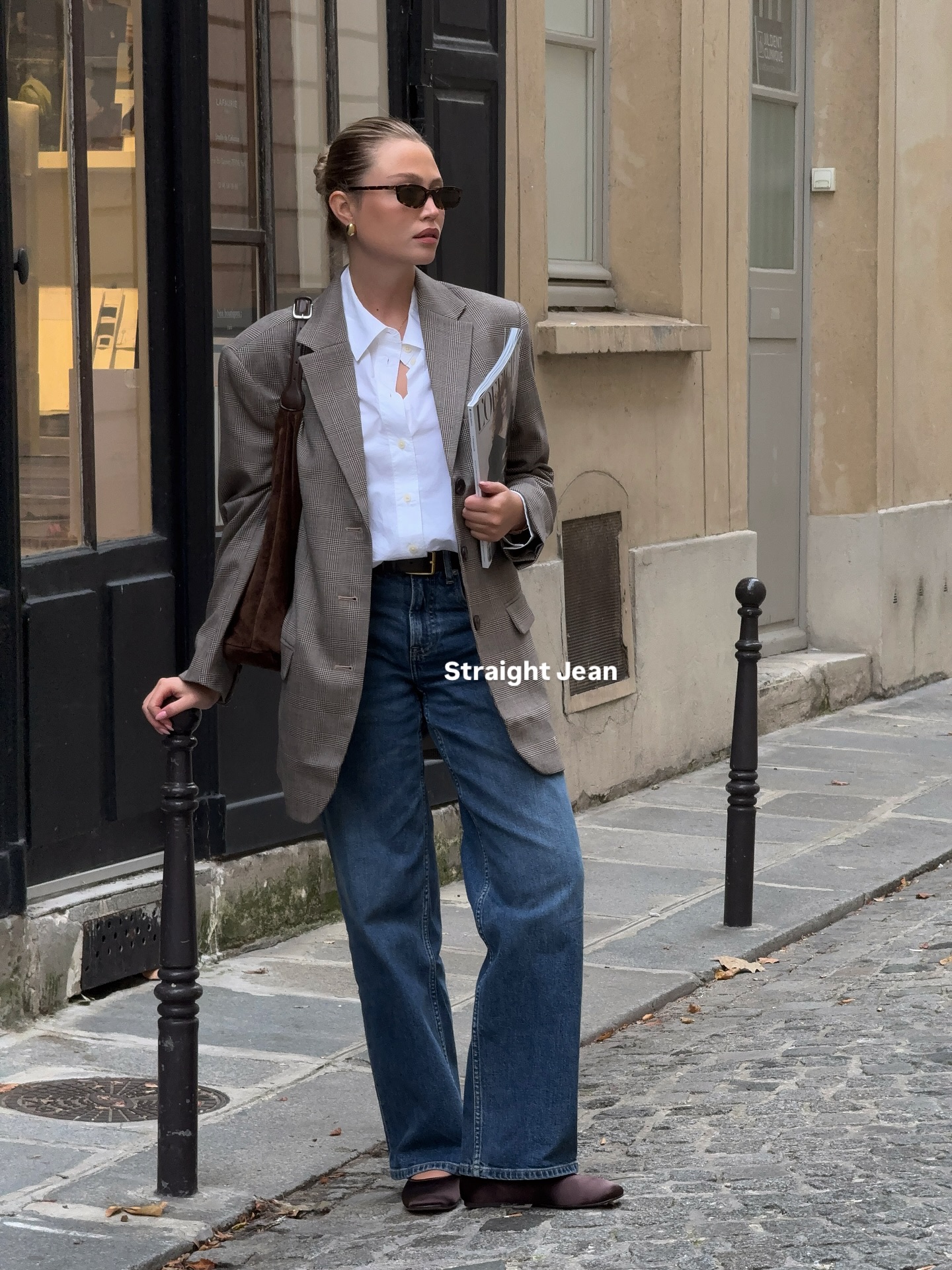 Điểm đặc trưng trong cách mặc blazer của phụ nữ Pháp là sự tự nhiên. Họ có thể khoác blazer ngoài áo thun trắng và quần jeans, đi cùng giày loafer hoặc ankle boots là đã có ngay một set đồ "effortless chic". Khi cần chỉn chu hơn, blazer được phối với quần âu cạp cao, áo sơ mi lụa và thắt lưng da mảnh. Blazer không chỉ mang lại vẻ chuyên nghiệp mà còn giúp tổng thể trông gọn gàng, có chiều sâu hơn mà không hề cứng nhắc.