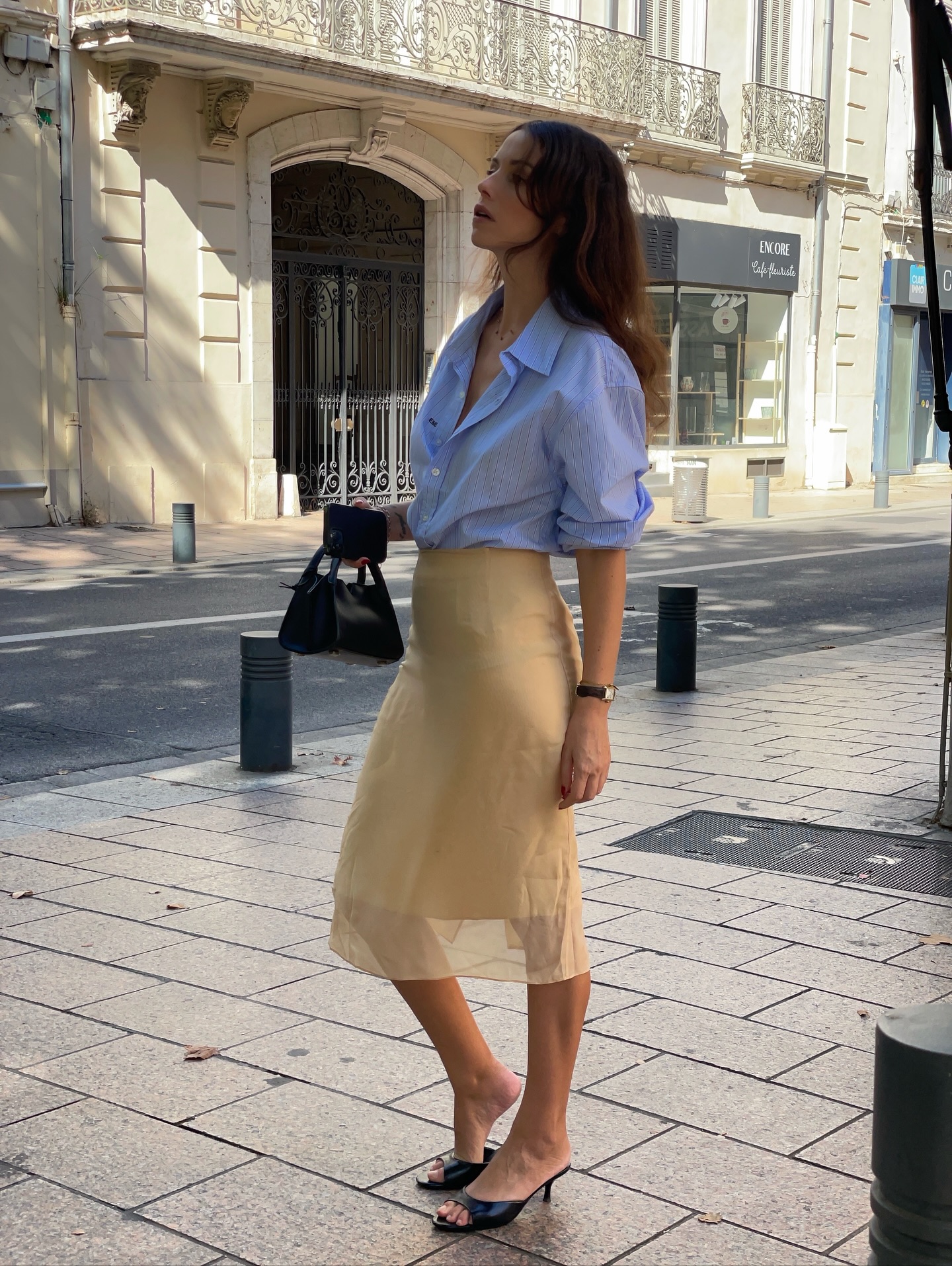 Không chỉ dễ dàng mang vào và tháo ra, giày mule cao gót còn giúp đôi chân thêm dài và thon gọn. Phụ nữ Pháp thường kết hợp chúng với váy midi hay quần ống rộng để tạo nên vẻ ngoài thời thượng và thanh lịch.