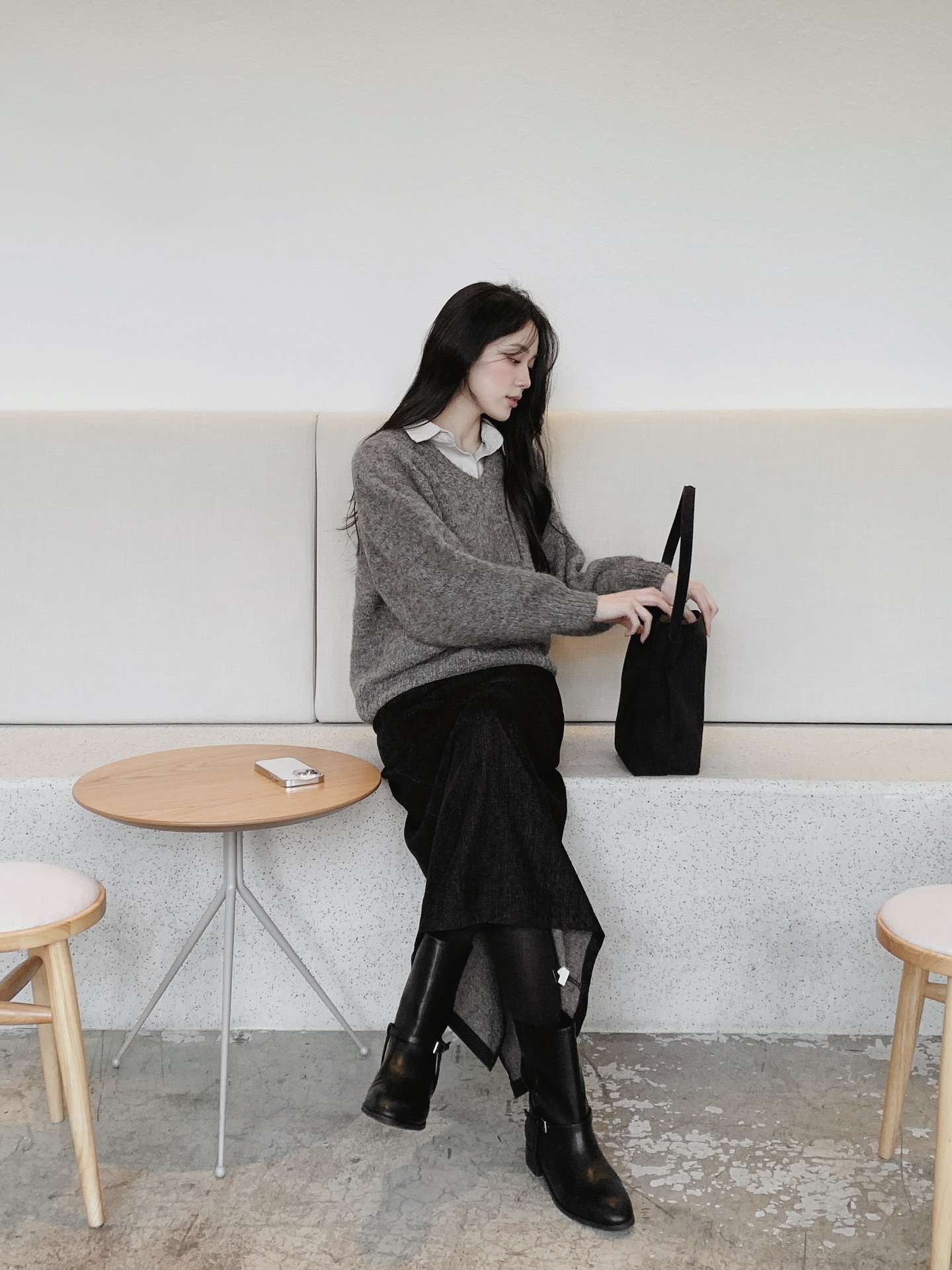 Áo len màu trung tính luôn là một lựa chọn tuyệt vời khi kết hợp với chân váy đen, đặc biệt trong những ngày thu đông. Những gam màu như be, xám, nâu hay ghi sẽ tạo ra vẻ đẹp thanh lịch, tinh tế mà không quá rườm rà. Chân váy đen kết hợp với áo len màu trung tính mang đến cho bạn một tổng thể hài hòa, không quá nổi bật nhưng cũng không hề nhạt nhòa. Đây là lựa chọn lý tưởng cho những ngày làm việc, hay những buổi hẹn hò nhẹ nhàng nhưng vẫn cần toát lên sự quý phái.