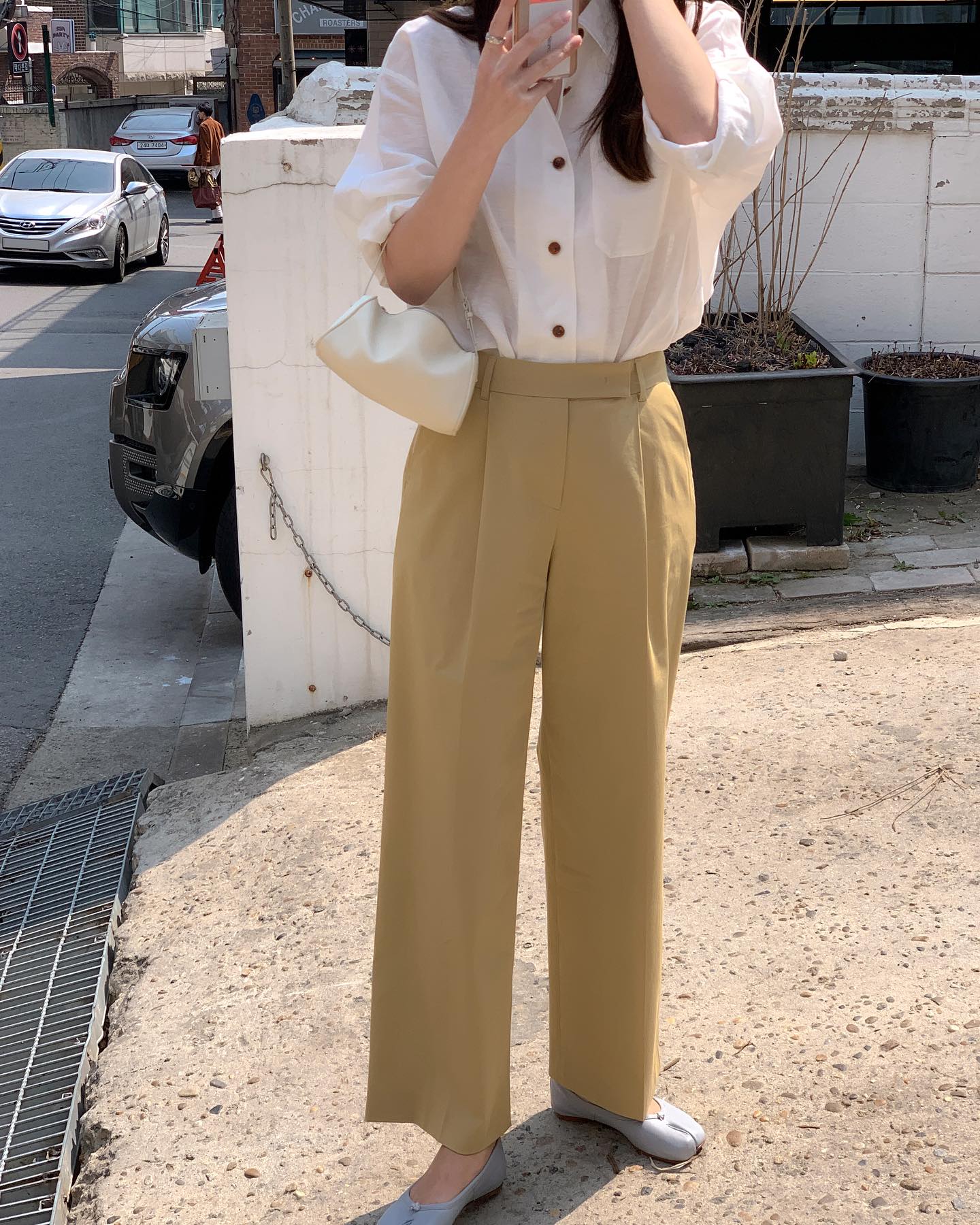 Một chiếc sơ mi trắng phối cùng quần be sẽ tạo nên phong cách tối giản nhưng vẫn rất tinh tế. Ngược lại, quần trắng đi cùng sơ mi màu xanh nhạt hoặc kẻ sọc sẽ mang lại vẻ ngoài trẻ trung hơn. Nếu muốn phá cách, bạn có thể thử sơ vin một phần hoặc buộc vạt áo để tạo điểm nhấn.