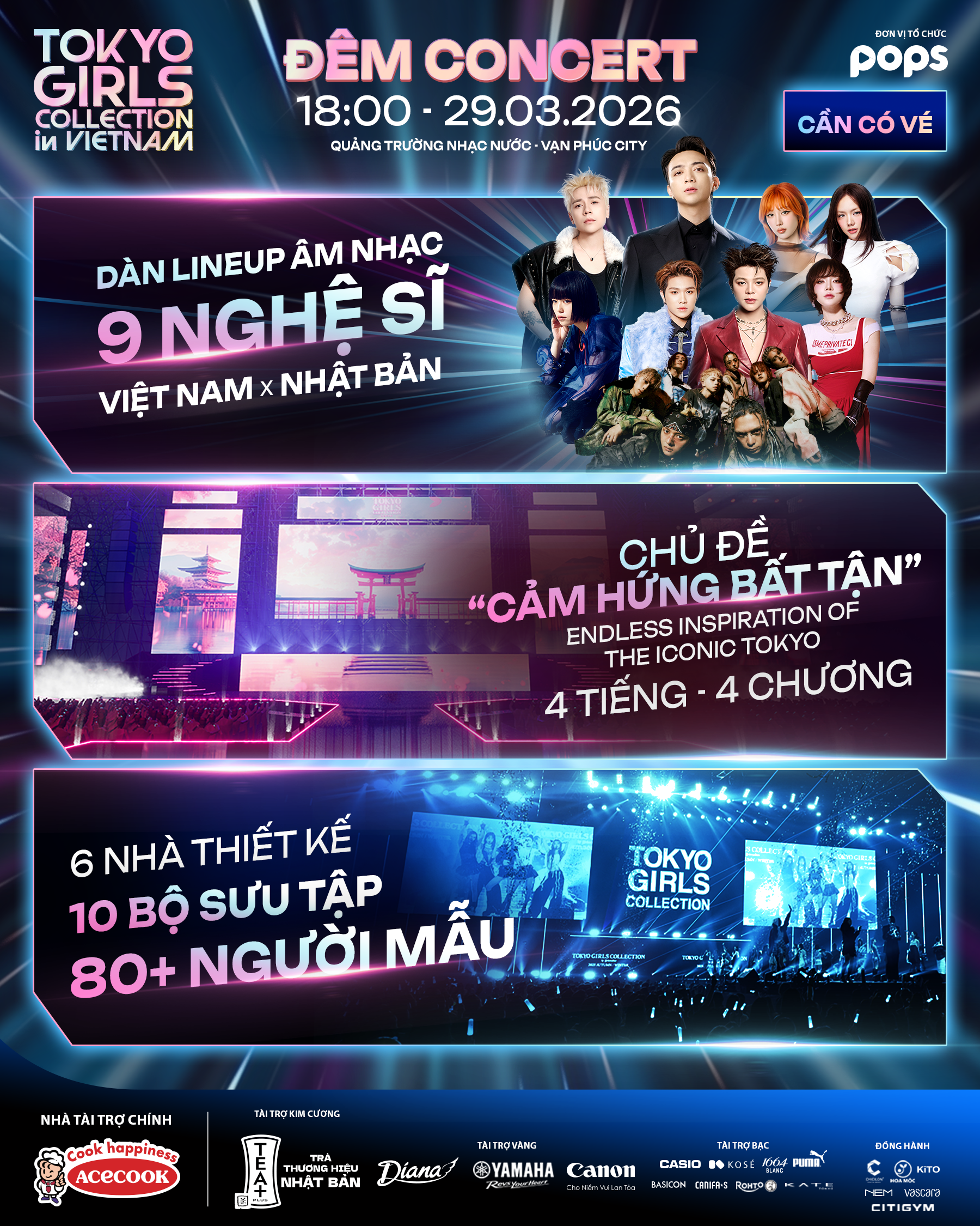 Trong lần đầu tiên đến với Việt Nam, TGC được tổ chức bởi POPS, đơn vị giải trí nội dung số đứng sau nhiều dự án quy mô lớn, góp phần đưa mô hình “music fashion festival” đến gần hơn với khán giả trong nước. Với chủ đề đầy "Endless Inspiration of the Iconic Tokyo", TGC Vietnam 2026 hứa hẹn mang đến một hành trình trải nghiệm văn hóa đa tầng và đầy cảm hứng.