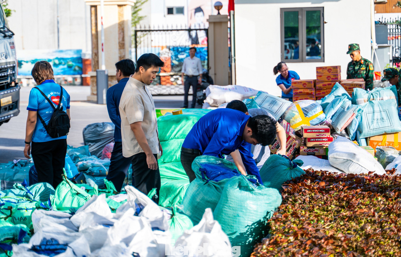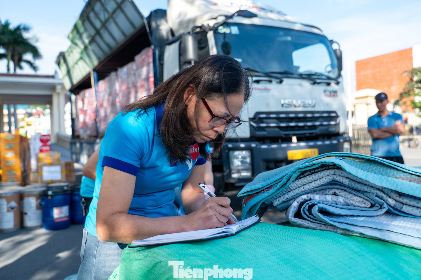 Ghi nhận của phóng viên Báo Tiền Phong, lực lượng tình nguyện gồm đoàn viên thanh niên, quân đội, các tổ chức từ thiện đều có mặt làm công tác kiểm đếm, vận chuyển và đưa hàng hóa lên xe đưa vào vùng lũ Lâm Đồng.