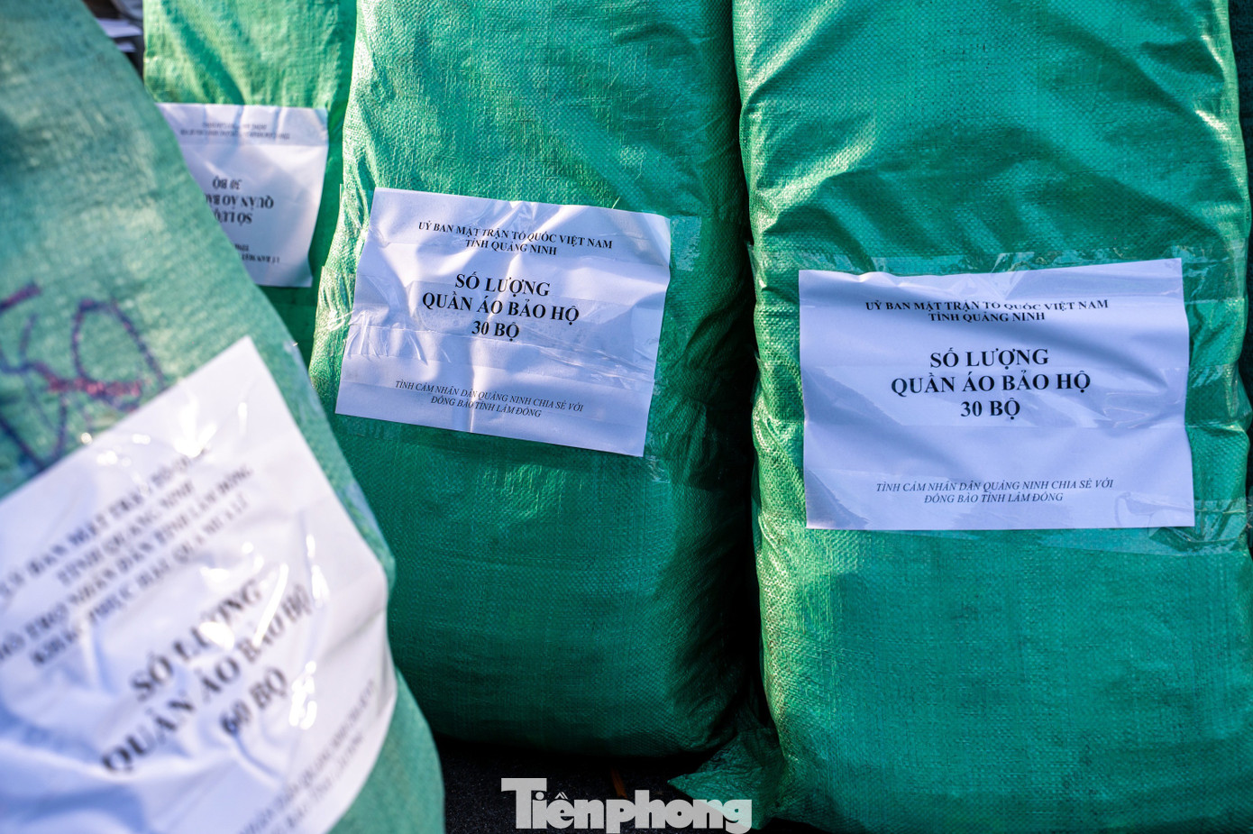 Sau chưa đầy một ngày phát động, hơn 45 tấn hàng hóa gồm áo mưa, chăn ấm, nhu yếu phẩm, nước uống và chế phẩm xử lý nước... được tập kết, đóng gói tại trụ sở MTTQ tỉnh Quảng Ninh sau đó vận chuyển xuyên đêm để cứu trợ người dân vùng lũ Lâm Đồng.