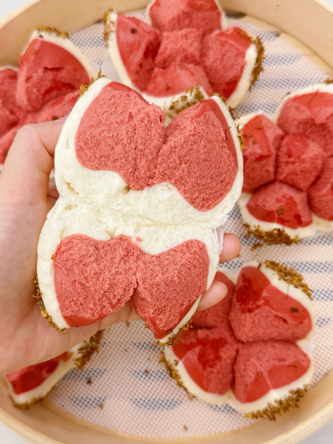 Mâm cúng ngày Tết không thể thiếu sắc đỏ may mắn. Năm nay, thay vì những món quen thuộc, chị em hãy thử trổ tài với món bánh bao "Hoa Khai Phú Quý" đỏ rực rỡ, bung nở tuyệt đẹp này nhé, đảm bảo vừa thành tâm vừa khiến cả nhà trầm trồ.