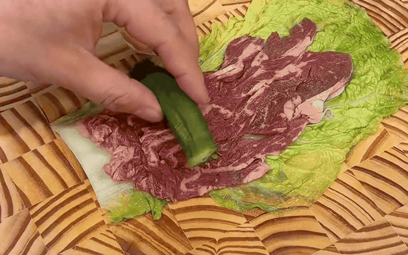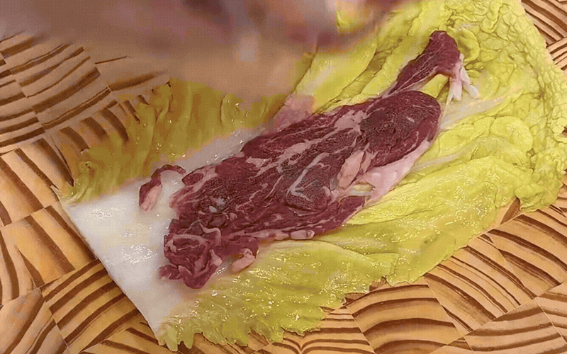 Thao tác chớp nhoáng này sẽ giúp lá cải rũ đi sự thô cứng, giữ được độ mềm dẻo cực kỳ dễ cuộn mà không hề bị rách hay nát bấy. Trải một chiếc lá xanh mướt ra mặt phẳng, bạn cứ thong thả xếp lần lượt từng lớp topping lên trên, một chút thịt bò béo ngậy xen lẫn những cọng nấm giòn sần sật và vài sợi cà rốt rực rỡ.