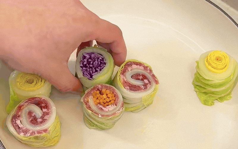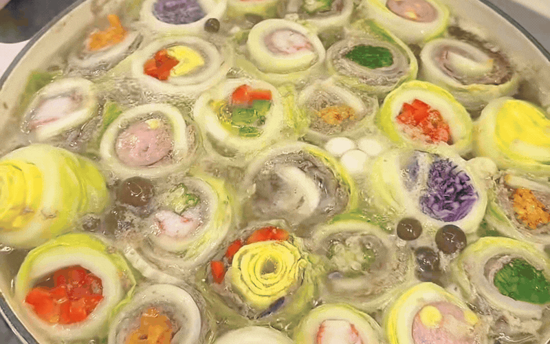 Từng chiếc lá cải thảo cuộn tròn đủ loại nhân tươi ngon không chỉ đánh thức vị giác bởi sự thanh mát, ngọt lành mà còn tượng trưng cho sự viên mãn, gói ghém phúc lộc và bình an cho cả một năm rực rỡ phía trước.