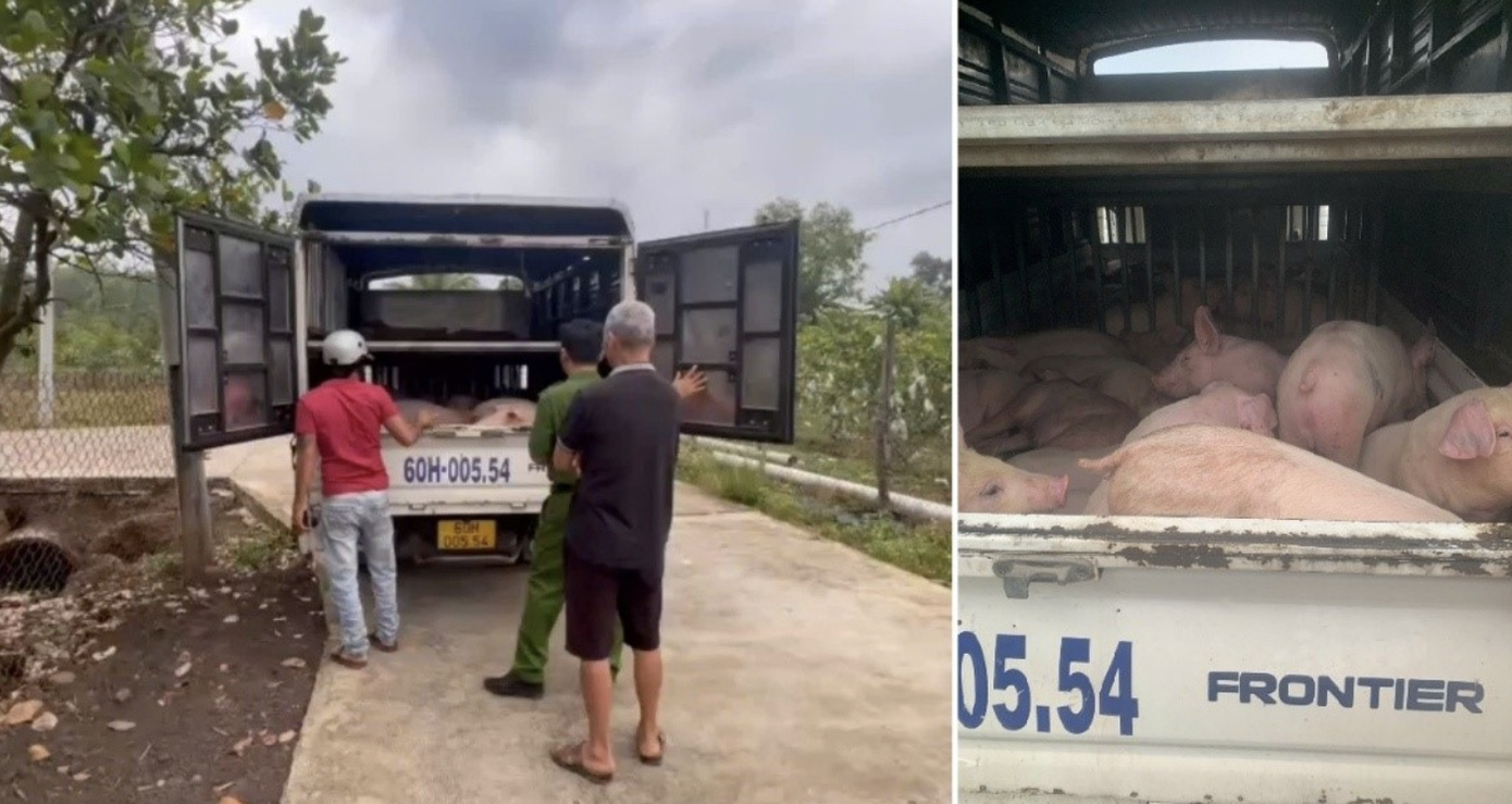 Qua kiểm tra, lực lượng chức năng phát hiện trên xe đang vận chuyển 45 con heo giống, mỗi con nặng khoảng 20kg. Theo khai nhận ban đầu, số heo này được vận chuyển từ xã Trảng Bom (tỉnh Đồng Nai), đi qua nhiều địa bàn như Tân Uyên, Phú Giáo, Bàu Bàng, TP Hồ Chí Minh trước khi đưa đến xã Tân Quan tiêu thụ.