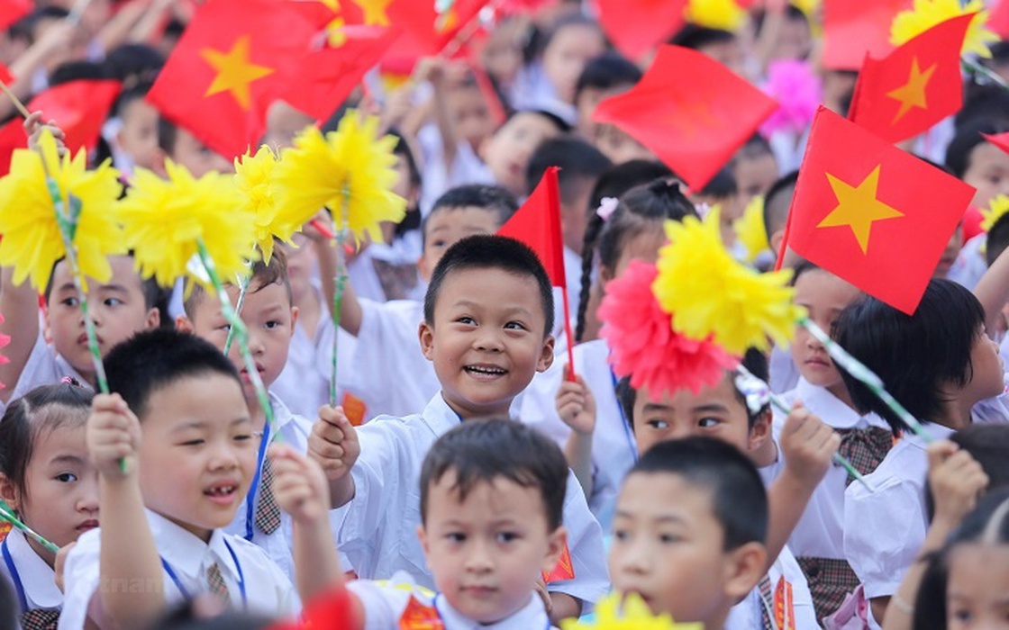 Nét vui mừng trên gương mặt, sự hạnh phúc trong từng nụ cười của các bạn nhỏ cùng với sắc màu đỏ rực tạo nên một bức tranh sống động trong ngày khai trường năm nay.