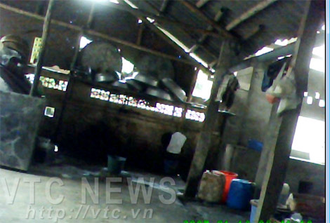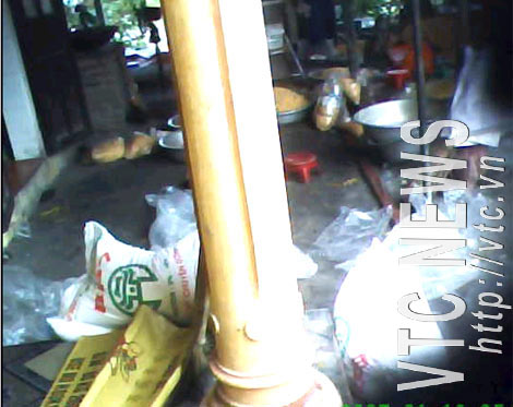 Đập vào mắt chúng tôi là cảnh tượng những bao ruốc nằm la liệt, vứt lăn lóc trên nền nhà ẩm thấp, bụi bặm. Máy xay thịt và máy làm bông ruốc ngổn ngang trên nền đất, không hề được che đậy. Bên cạnh đó, những nồi đựng nước mắm hoen rỉ, đen kịt, mỡ đặc quánh bám xung quanh tạo “môi trường lý tưởng” cho ruồi, nhặng cư trú và "oanh tạc". Những chiếc chảo sao ruốc biến màu, đóng vảy bẩn như thể lâu ngày chưa được kỳ cọ, lau chùi.