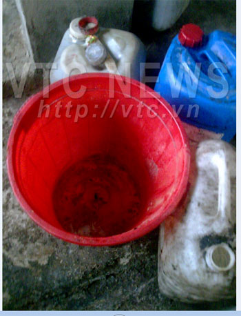 Những xô, can nhựa đựng mắm bẩn vẫn được các cơ sở sản xuất sử dụng