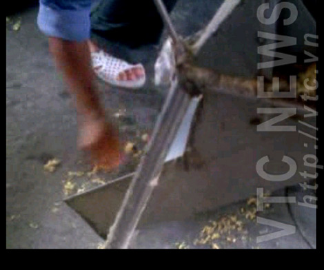 Dụng cụ để rang ruốc vón cục vì bẩn