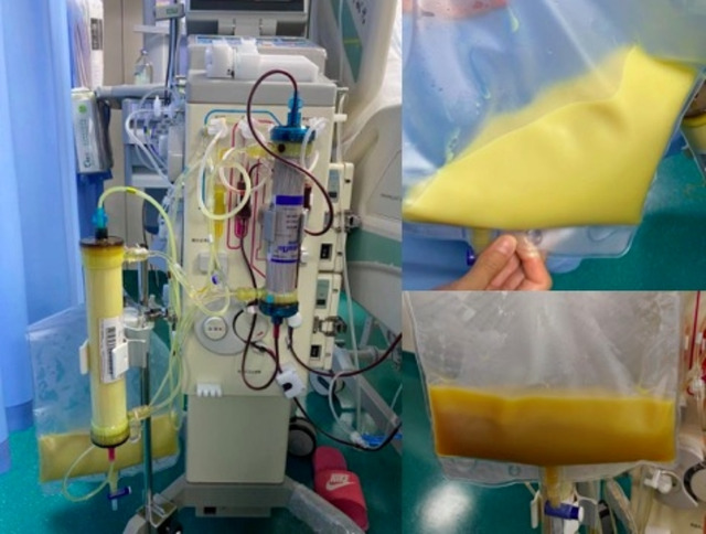 "Trong quá trình điều trị, chúng tôi lọc ra tới khoảng 2000 ml dịch máu trắng đục, dấu hiệu cho thấy lượng mỡ trong máu tăng cực cao, đi kèm viêm tụy cấp nặng" - bác sĩ Dai nói.