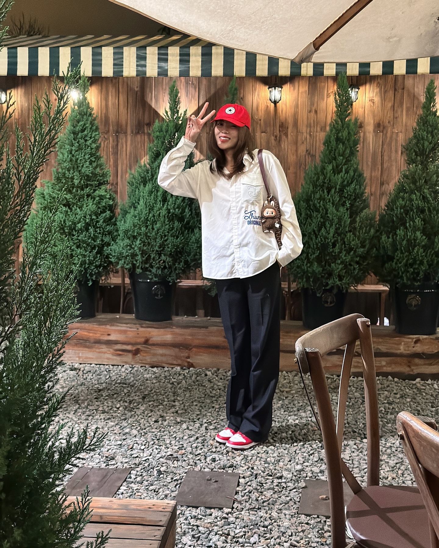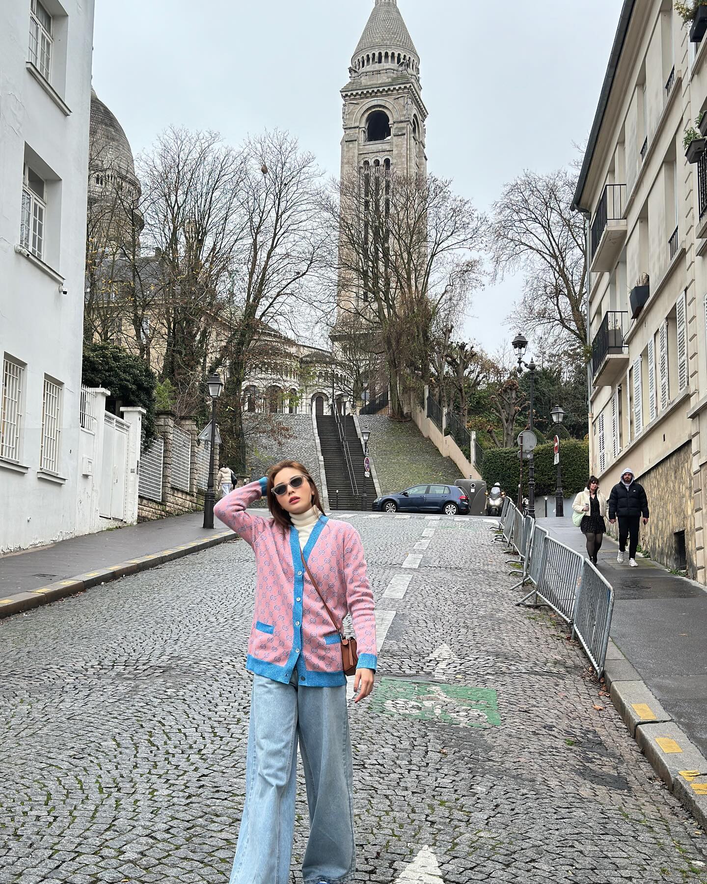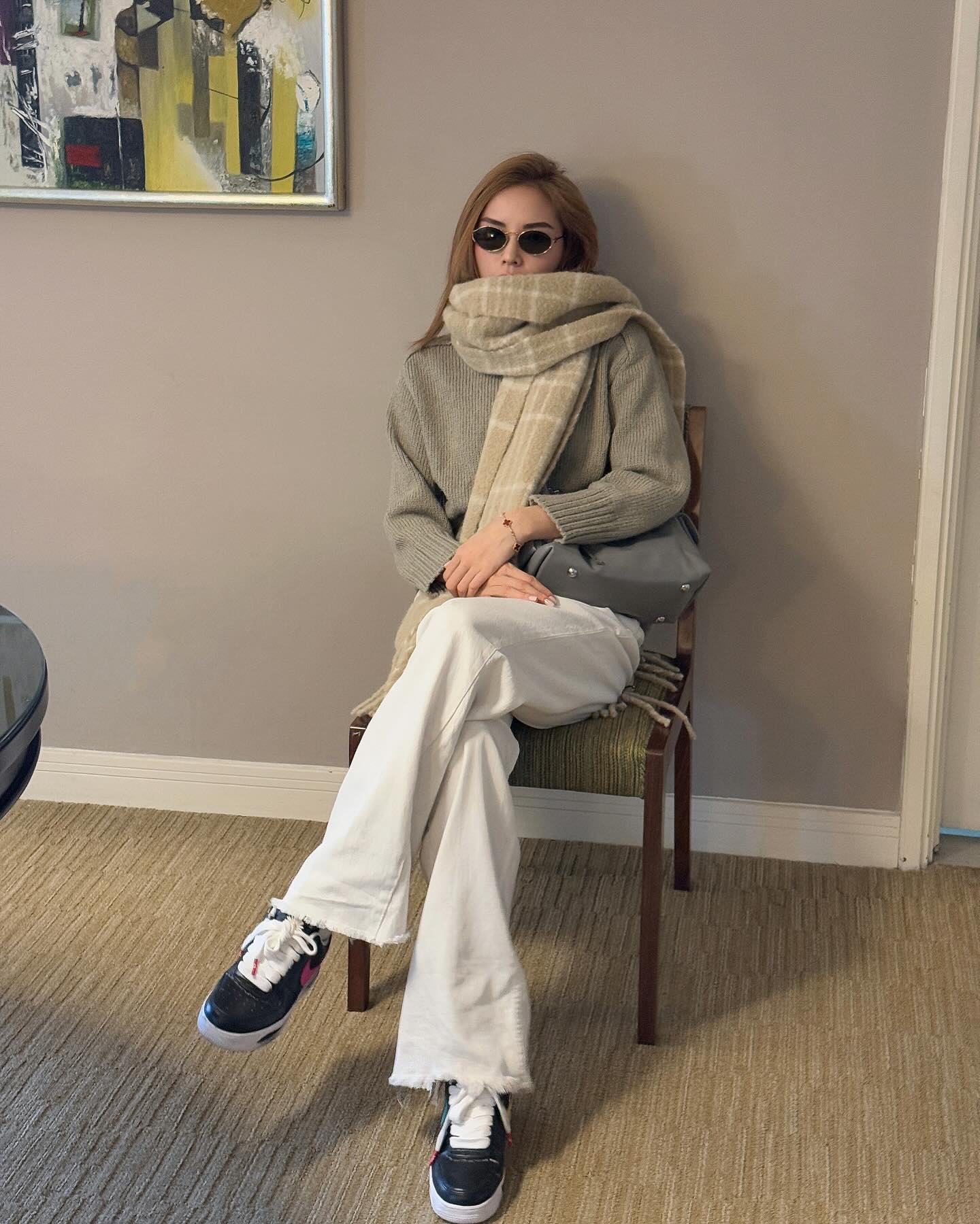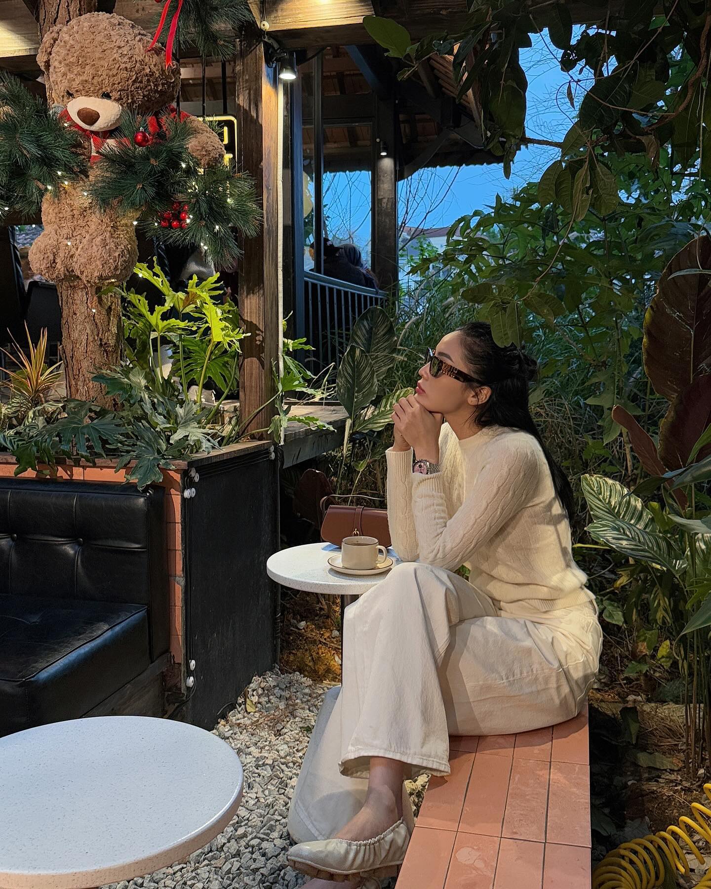 Kỳ Duyên thường cài kín cúc cardigan và layer bên trong một chiếc áo màu trung tính. Cách phối này giúp outfit trông gọn gàng và mang hơi hướng cổ điển pha lẫn hiện đại. Khi đi cùng quần âu ống rộng hoặc quần denim trơn màu, cardigan góp phần tạo nên hình ảnh thanh lịch nhưng vẫn rất thời trang.