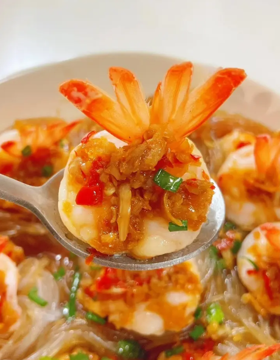 Trong bữa tối ngày 30 Tết một món ăn thơm lừng, rực rỡ sắc màu trong như những bông hoa nở rộ sẽ là thông điệp của tình yêu thương và ý nghĩa cầu mong may mắn trong năm tới. Những con tôm đứng thẳng và kiêu hãnh thực sự giống như những bông hoa đang nở rộ, mang theo những kỳ vọng tốt đẹp của chúng ta về "hoa nở và thịnh vượng" trong năm mới. Tôm giòn ngon mang vị ngọt tươi từ biển cả, miến mềm dai thấm gia vị sốt tỏi đậm đà cực đưa vị.
