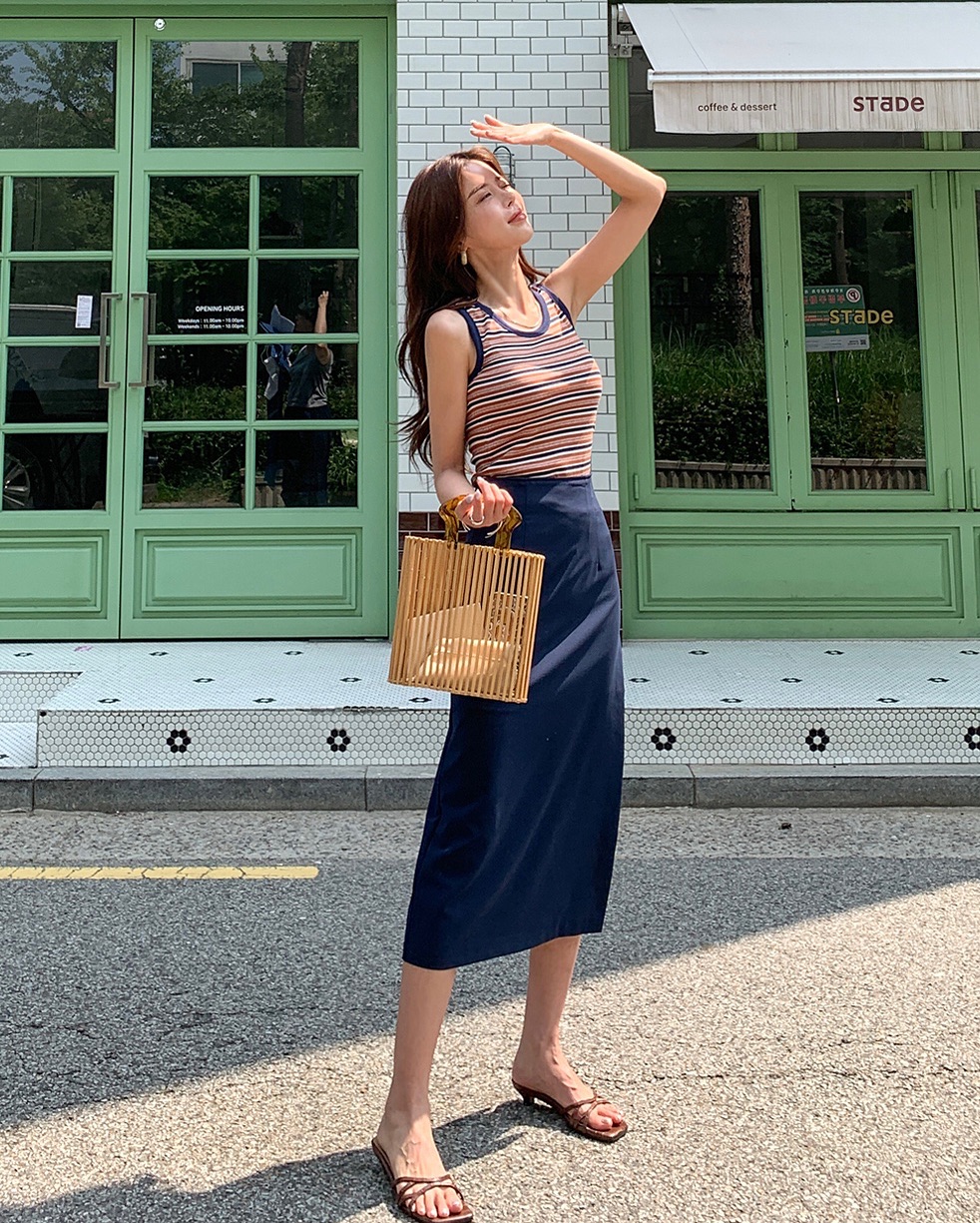 Chân váy dài mang đến vẻ nữ tính, mềm mại và có phần bay bổng. Với item này, sandal quai mảnh hoặc sandal dây buộc là lựa chọn lý tưởng. Những thiết kế thanh thoát sẽ không làm tổng thể bị nặng nề, đồng thời giúp giữ được sự nhẹ nhàng vốn có của chân váy.