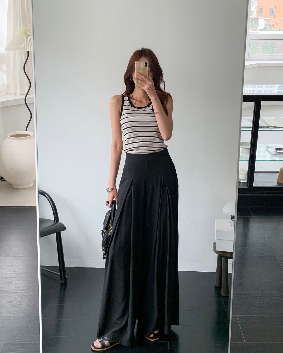 Quần ống rộng thường mang lại cảm giác phóng khoáng, thoải mái nhưng cũng dễ khiến vóc dáng bị "nuốt chửng" nếu không chọn giày phù hợp. Vì vậy, sandal đi cùng nên giúp tạo điểm cân bằng và tôn chiều cao.