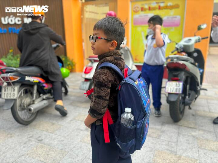 Thời tiết se lạnh, nhiều phụ huynh chuẩn bị cả áo len cho con khi tới trường sáng nay.