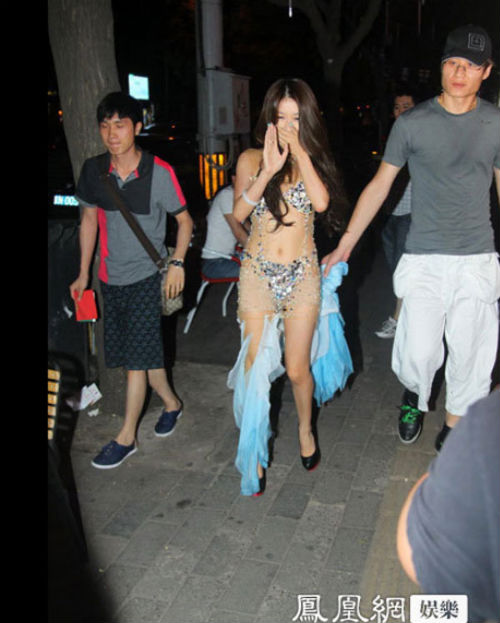 Nhiều người dân xung quanh đã không khỏi tò mò khi thấy nữ ca sĩ họ Tôn diện bộ cánh khêu gợi trên đường. Bản thân Kính Viện cũng thẹn thùng không kém khi bị phóng viên chụp ảnh liên tục. Sau khi tới quán bar, cô đã chọn một chỗ ngồi tốt và có buổi trao đổi ngắn với ký giả.