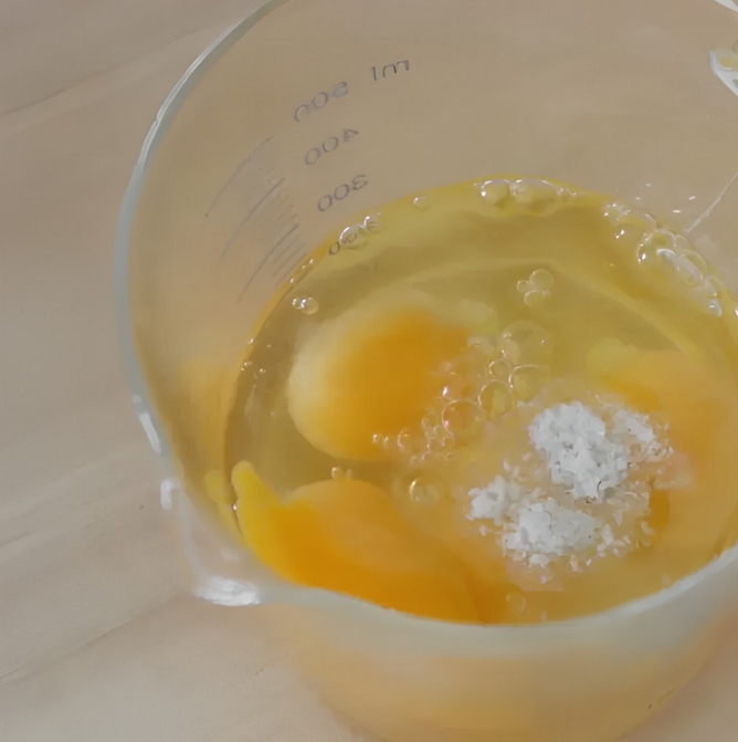 Trộn nhẹ nhàng: Sau khi hỗn hợp trứng đã được đánh đều, thêm nước ấm (không dùng nước sôi) và một chút muối, rồi khuấy nhẹ nhàng lại.