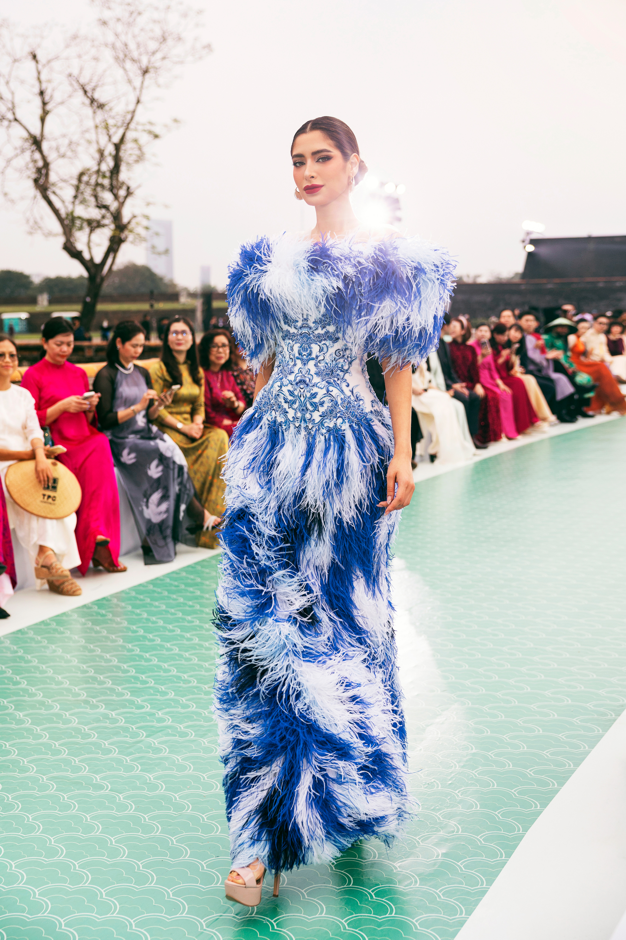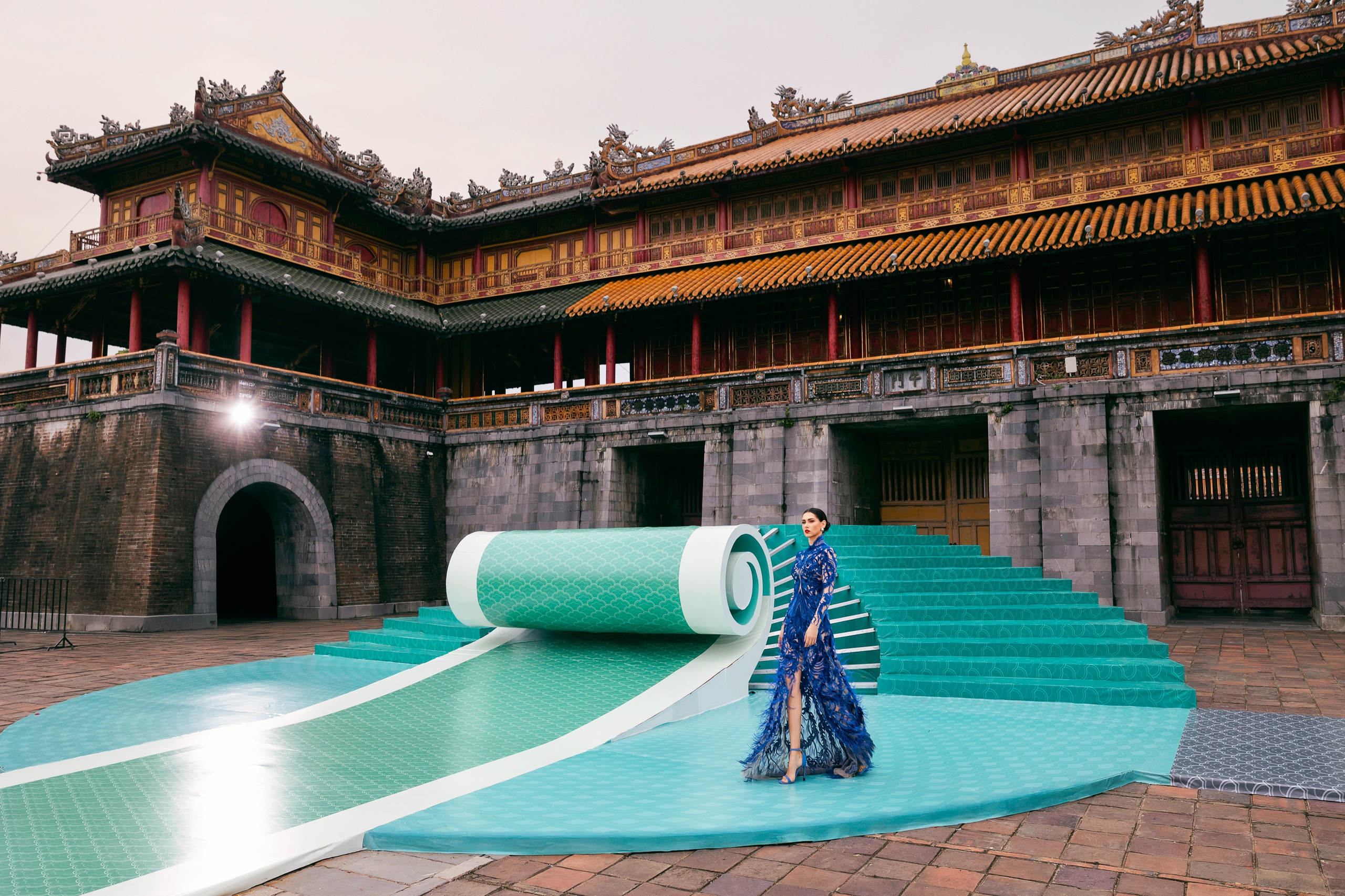 Lần đầu tiên, một sàn diễn thời trang được dựng trực tiếp ngay trước Ngọ Môn, cổng chính phía Nam của Hoàng thành, công trình được xây dựng dưới thời vua Minh Mạng. Sàn diễn được thiết kế như một “dải lụa xanh” mềm mại, có hoa văn cát tường và đặt đúng trên trục hoàng đạo bắc qua đôi hồ nước trước Ngọ Môn. Sự kiện không chỉ là show thời trang, mà còn là góp phần quảng bá văn hoá, tôn vinh nét đẹp truyền thống và lịch sử Việt Nam.