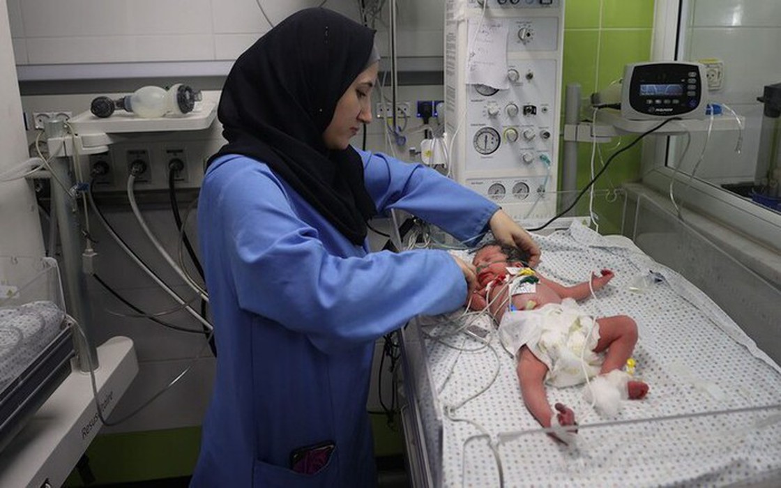 Một em bé được sinh tại Bệnh viện Nasser ở Gaza. Mẹ của bé đã thiệt mạng trong một cuộc không kích của Israel vào ngày 24/10/2023. Ảnh: Getty Images