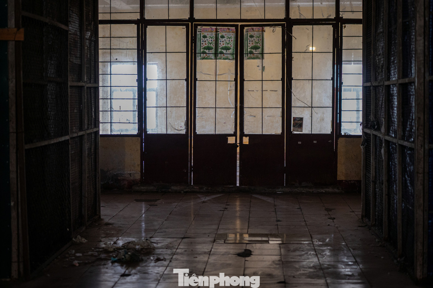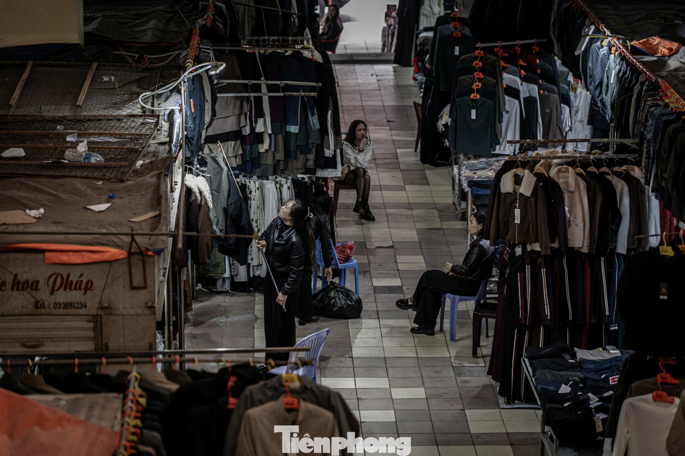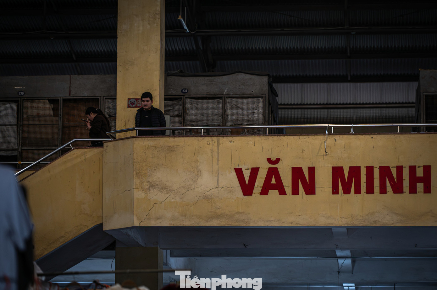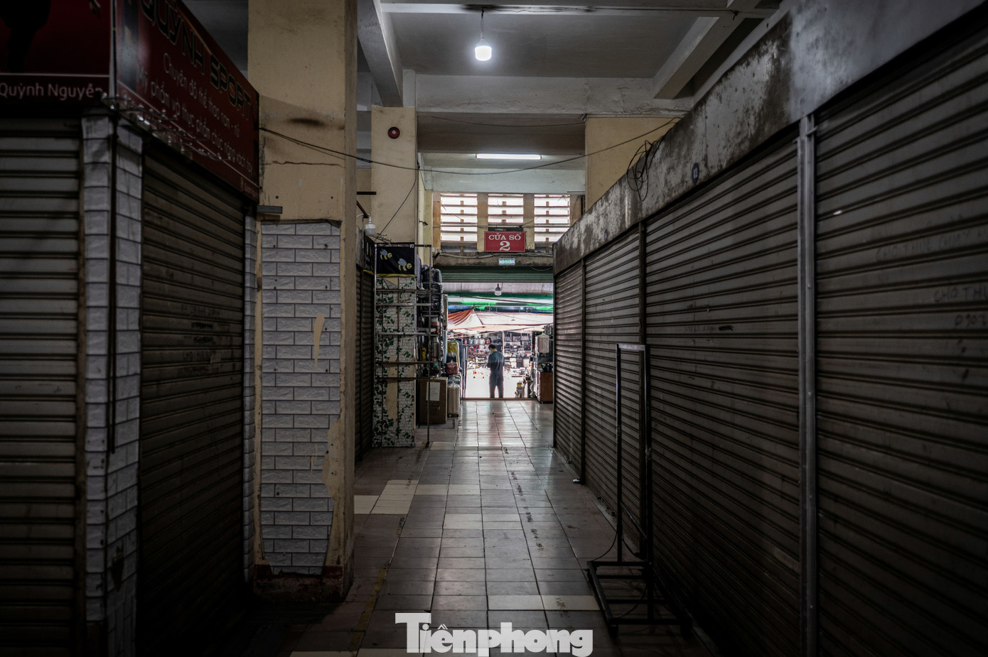 Trong khi đó toàn bộ tầng 2 của khu chợ đều đã đóng cửa, tắt đèn tối om. Bụi bặm và mùi ẩm mốc bốc lên do không có người ra vào tại khu vực này.