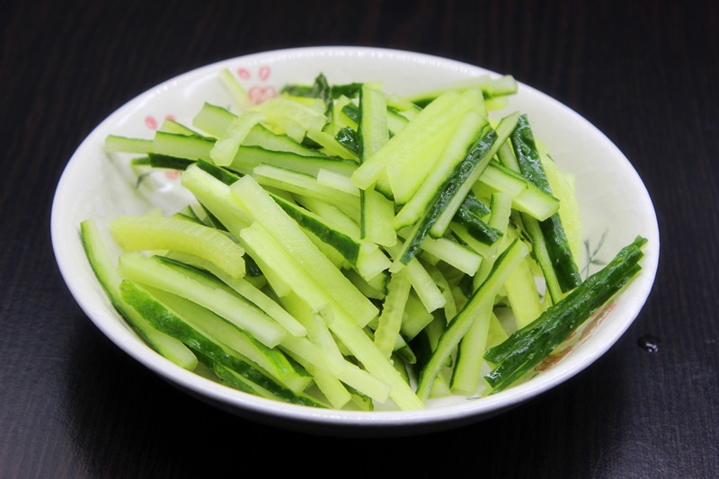 Nguyên liệu làm món thịt heo thái sợi xào dưa chuột và củ cải muối chua