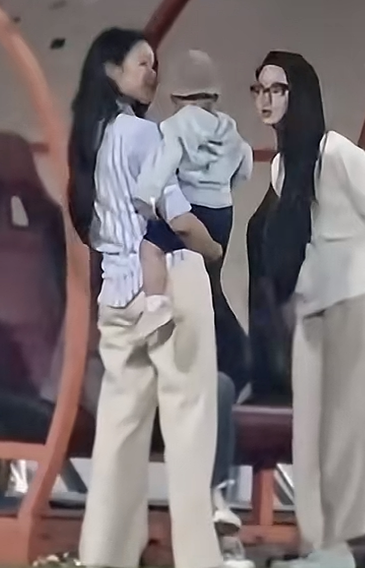 Hải My bế con trai đứng nói chuyện với Thanh Huyền (Ảnh: Bóng đá & Đời sống)