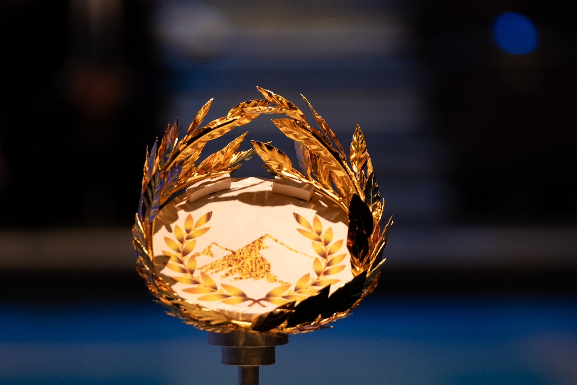 Vòng nguyệt quế Chung kết năm 2025 được làm bằng đồng thau và mạ vàng 18k. Ảnh: Như Hoàn