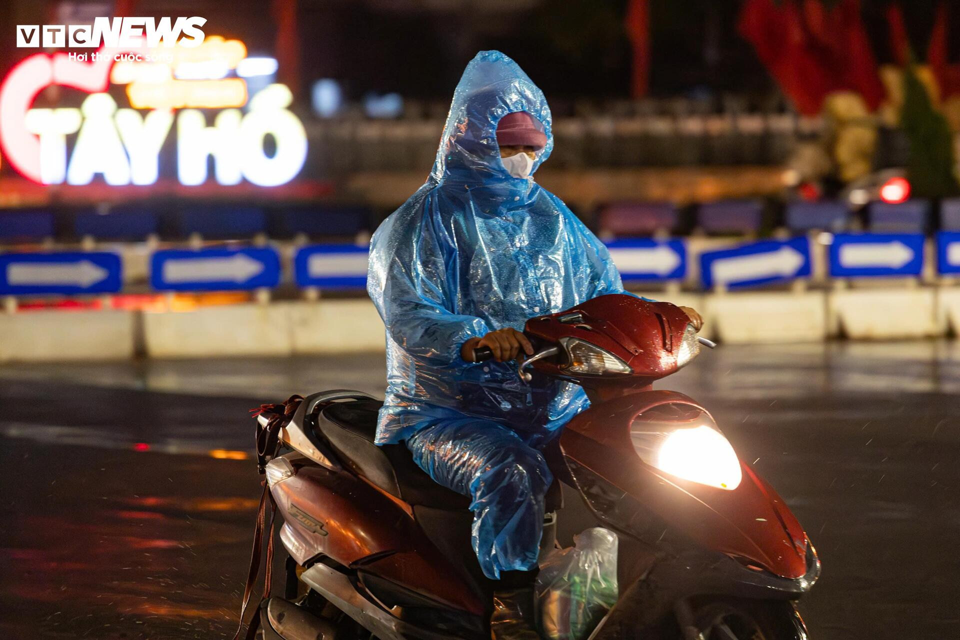 Những chiếc áo mỏng vừa che mưa, vừa trở thành “lá chắn” trước những luồng gió lạnh táp thẳng vào người.