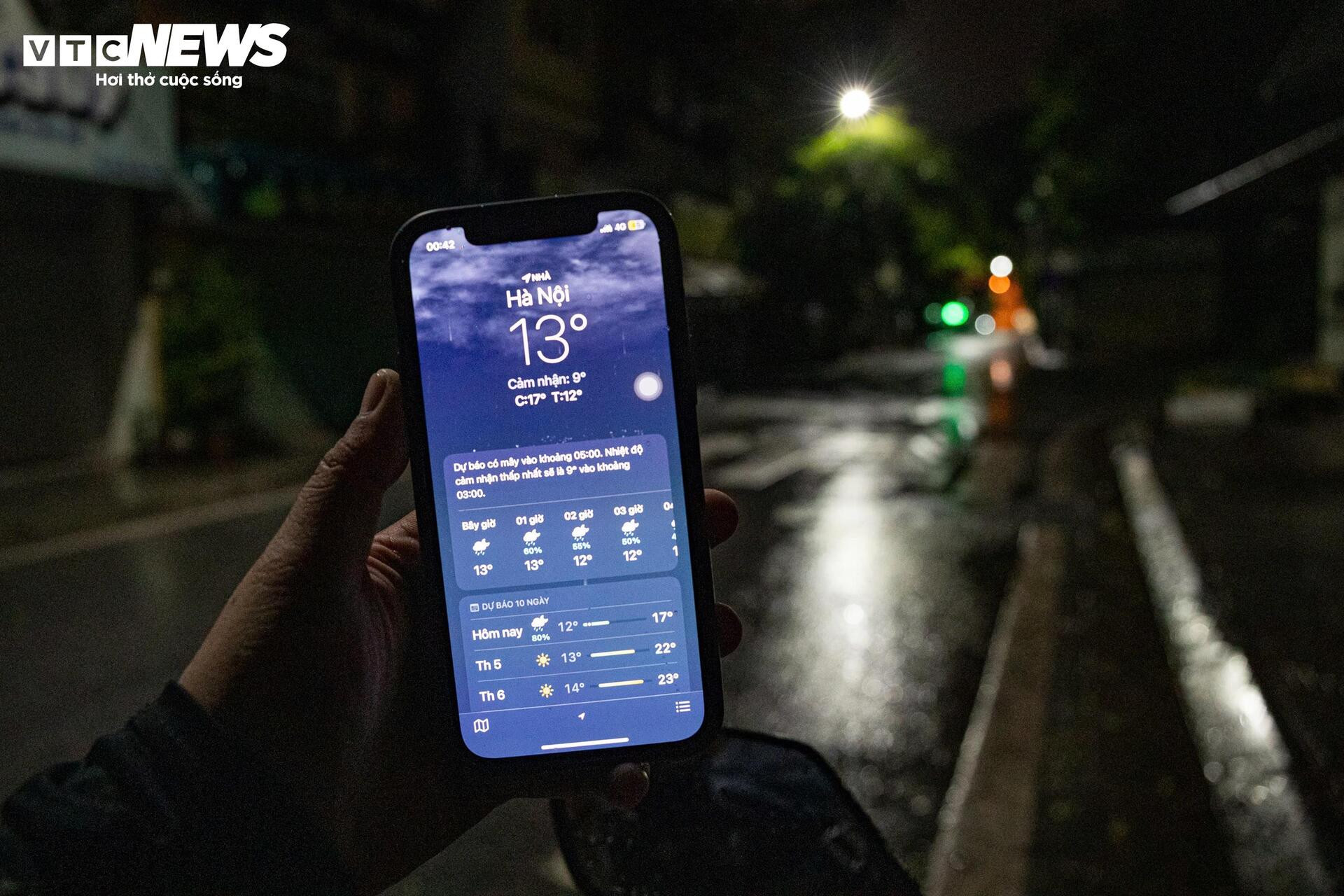 Nhiệt độ ban đêm nhiều thời điểm chỉ quanh ngưỡng 12-13°C, gió thổi từng cơn lạnh buốt khiến người dân đi đường co ro dù đã khoác lên mình nhiều lớp áo.