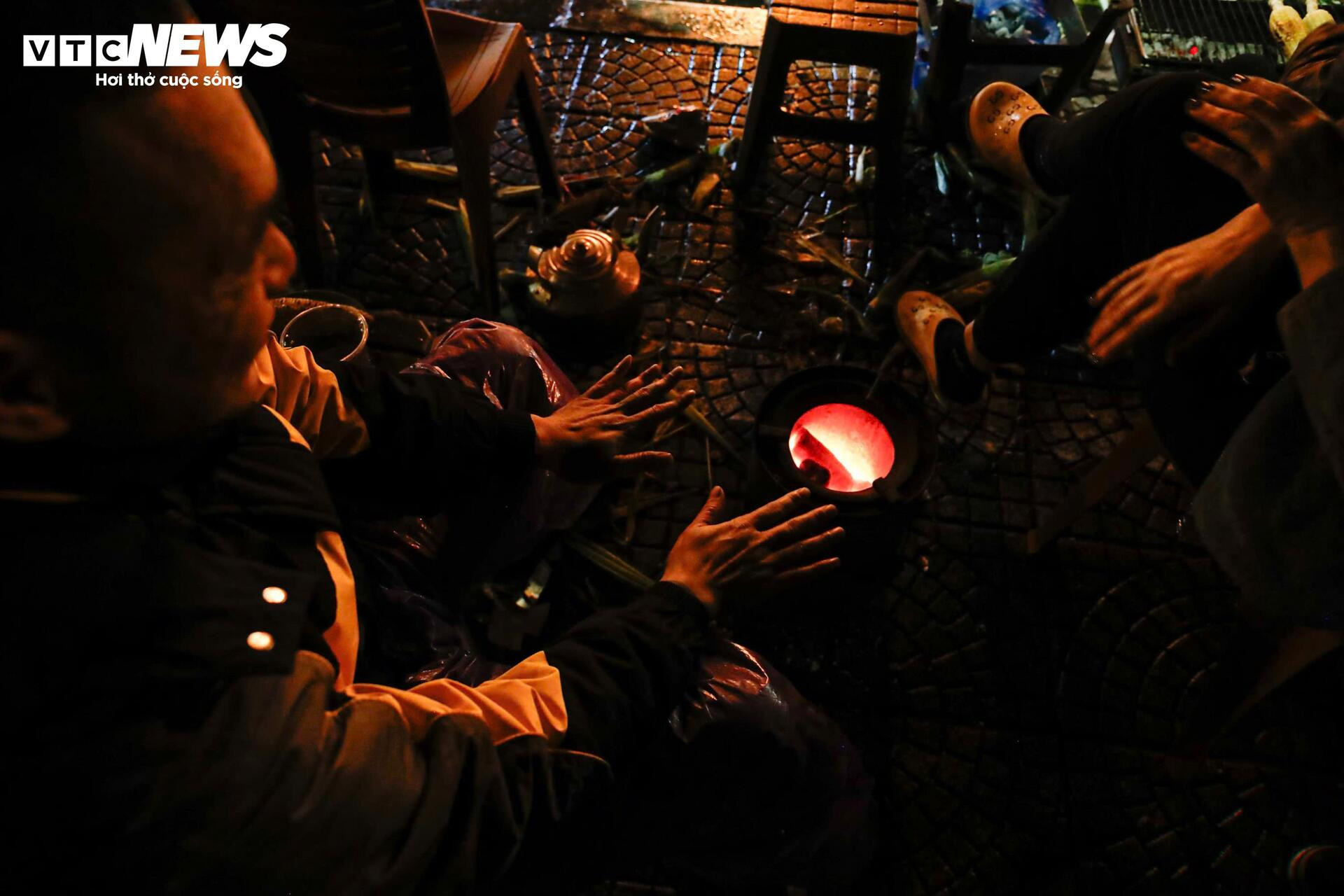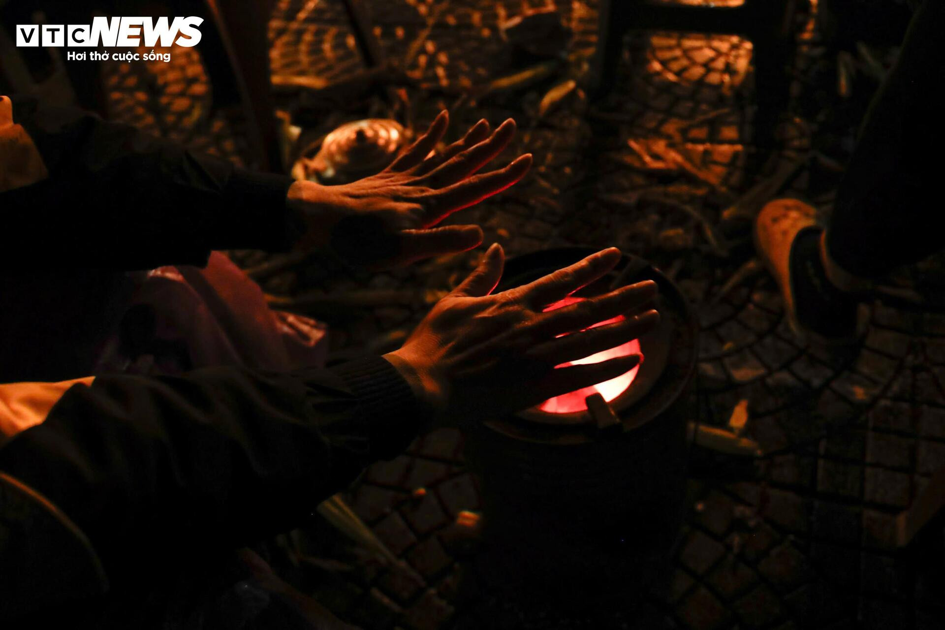 Khi nhiệt độ ngoài trời xuống thấp, một số người phải tìm cách sưởi ấm tạm thời ngay trên hè phố. Nhiều nhóm lao động nhặt vài mẩu gỗ khô, mảnh carton rồi nhóm lửa để xua bớt cái lạnh cắt da.
