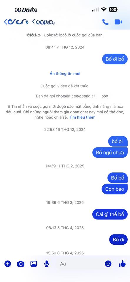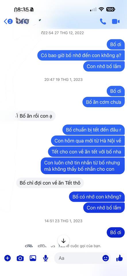 Một bức ảnh chụp màn hình những dòng tin nhắn đơn phương: "Bố ơi, có bao giờ bố nhớ đến con không?", "Bố ăn cơm chưa?", "Con luôn chờ tin nhắn từ bố nhưng không thấy". Đáp lại sự nồng nhiệt và mong cầu ấy là những khoảng lặng kéo dài hàng năm trời, hoặc những câu trả lời cụt lủn, vô tình.