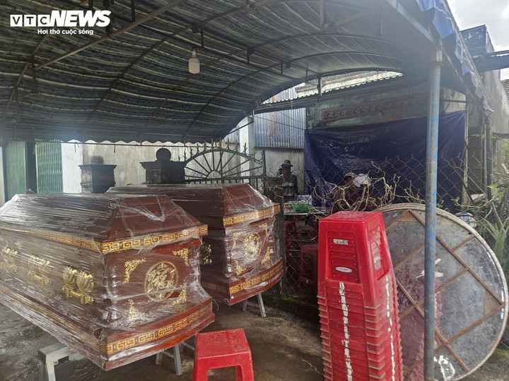 Cách nhà bà L. chừng 30 mét là căn nhà của ông V. và bà T. Người thân, họ hàng túc trực bên linh cữu, ánh mắt thất thần.