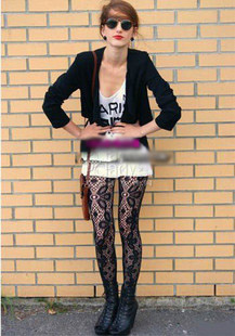 Họa tiết hoa văn lớn trên tất da chân từ ren và lưới