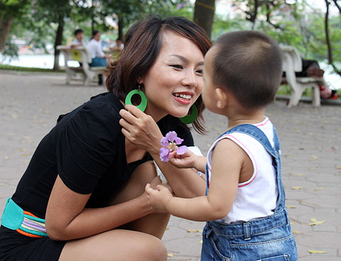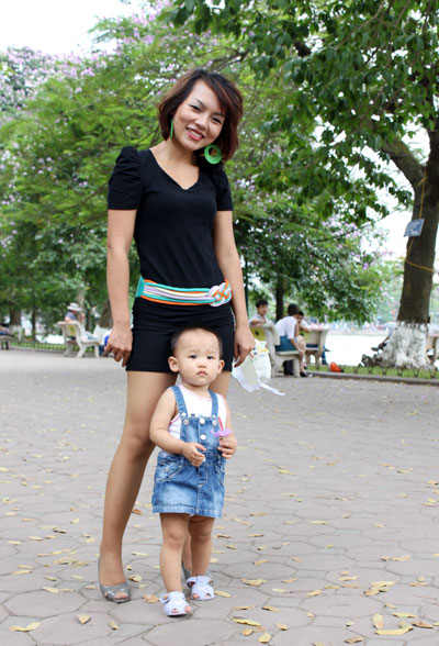 Một sáng trong lành dạo Hồ Gươm, Hà Nội, hai mẹ con nữ ca sĩ có khoảnh khắc bình yên khi cùng ăn kem, đùa nghịch và ngắm mặt hồ trong xanh.