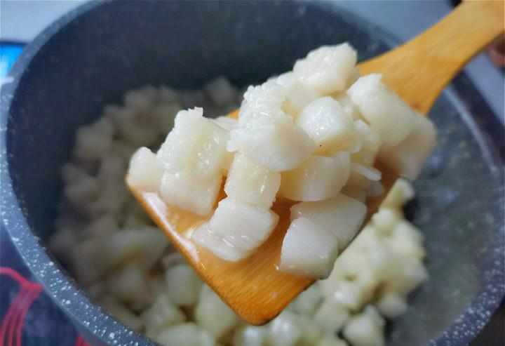 Thái nhỏ: Nên thái mỡ thành miếng nhỏ hoặc hạt lựu để mỡ tiết ra đều hơn.