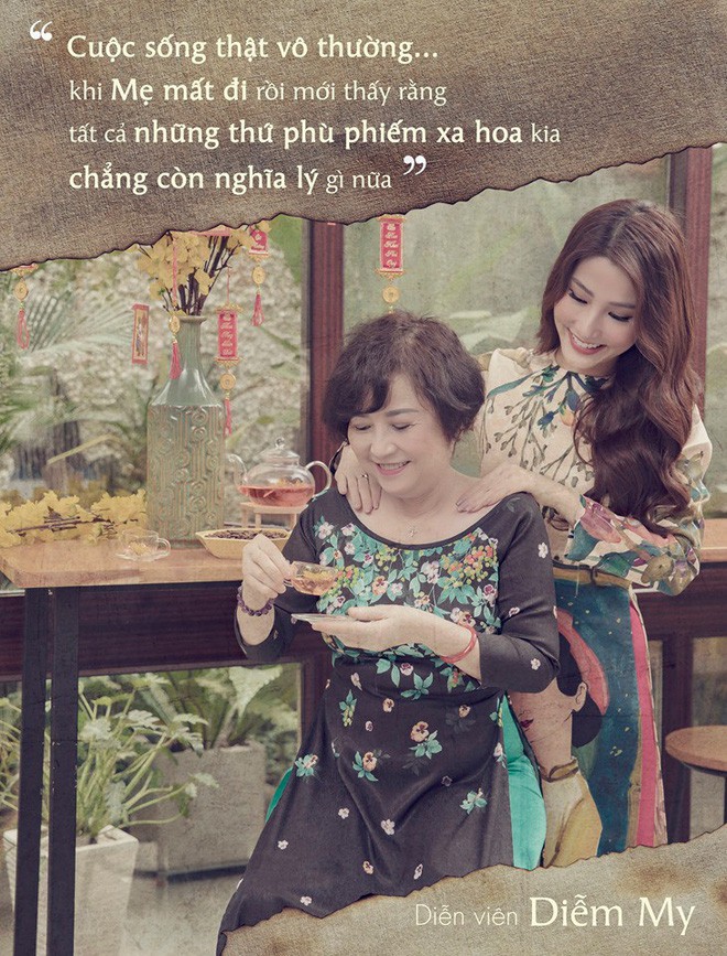 Biết sức khoẻ mẹ không tốt, cô thường xuyên đưa mẹ sang nước ngoài chạy chữa chỉ với mong ước mẹ có thể ở lại bên cô lâu một chút. Đợt nằm viện gần đây nhất, cô con gái nhỏ Diễm My luôn túc trực chăm sóc mẹ, cô nấu ăn, kể chuyện và làm mọi thứ nếu điều đó làm mẹ cô hạnh phúc. Nhưng rồi, mẹ đã không đợi được cô, những ngày trong tang lễ, Diễm My thất thần, nghẹn ngào khi ai đó nhắc đến mẹ. Đến thời điểm hiện tại Diễm My vẫn không thể chấp nhận sự thật mẹ cô đã vĩnh viễn bỏ cô mà đi, cô thường xuyên viết tâm thư bày tỏ tình cảm với mẹ khiến ai cũng chạnh lòng, xót xa.