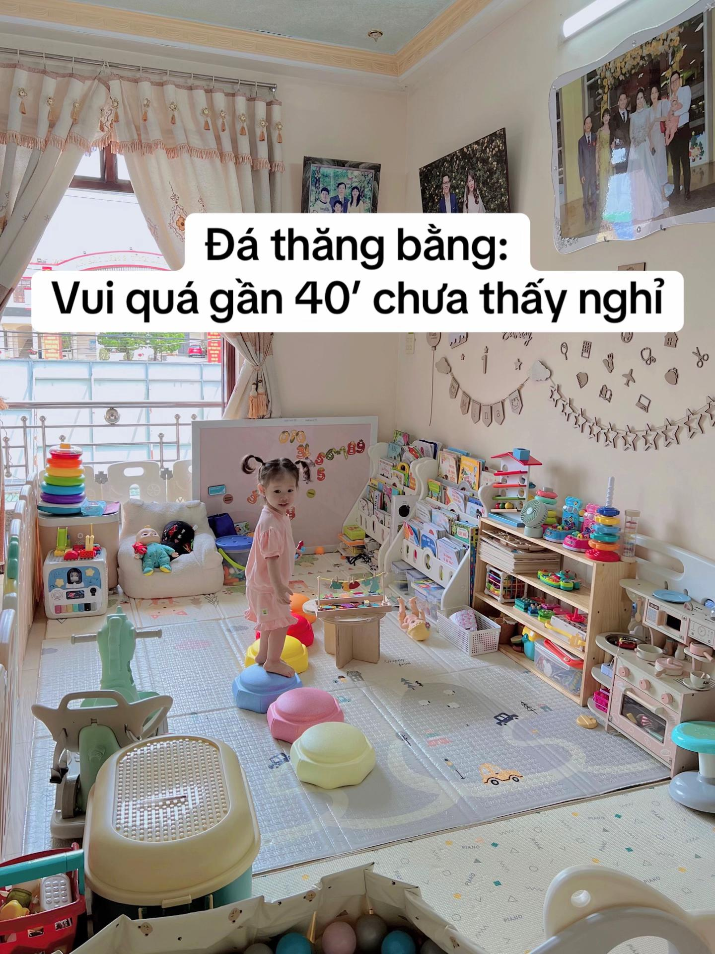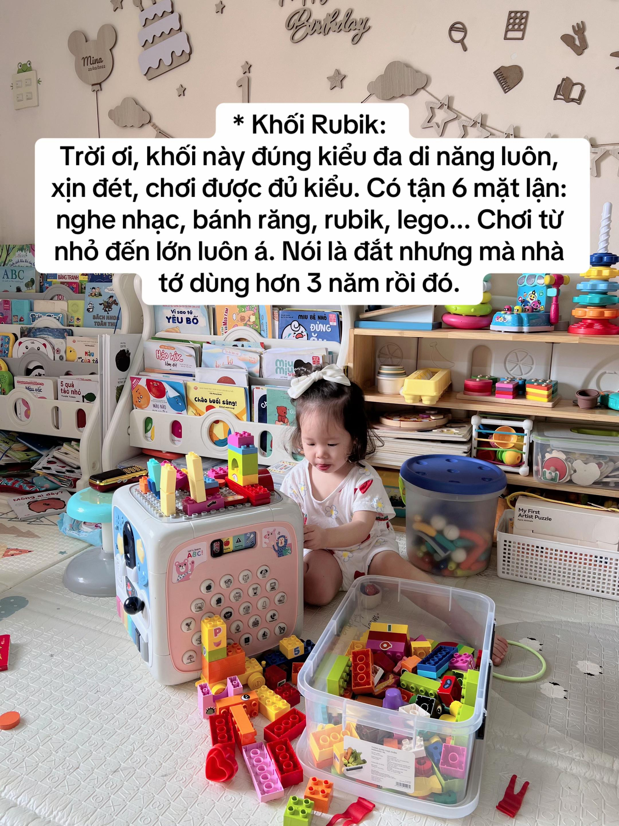 Để giữ cho con luôn hào hứng trong khi chơi đồ chơi, vợ chồng chị Hà còn áp dụng cách "xoay vòng đồ chơi": Không bày hết ra một lúc, mà mỗi tuần chỉ cho chơi một ít, tuần sau lại đổi. Nhờ vậy, món nào cũng trở nên "mới" với trẻ, giúp bé chơi lâu mà không chán. Những món đồ chơi từ thời chị lớn Mina sơ sinh giờ đưa cho em bé Mimi vẫn còn nguyên giá trị, thậm chí chị lớn vẫn còn nghĩ đó là đồ chơi bố mẹ vừa mới mua cho 2 chị em.