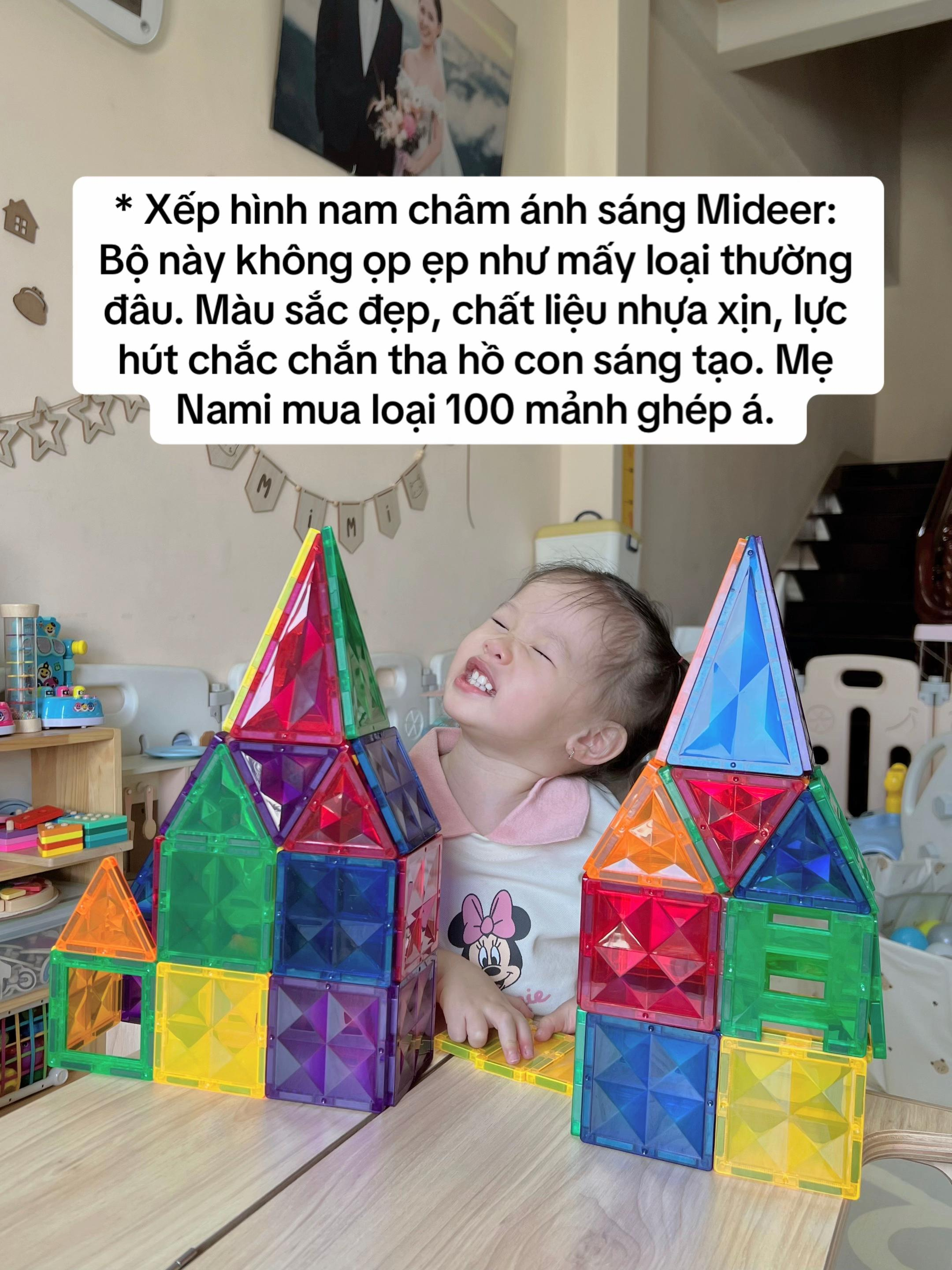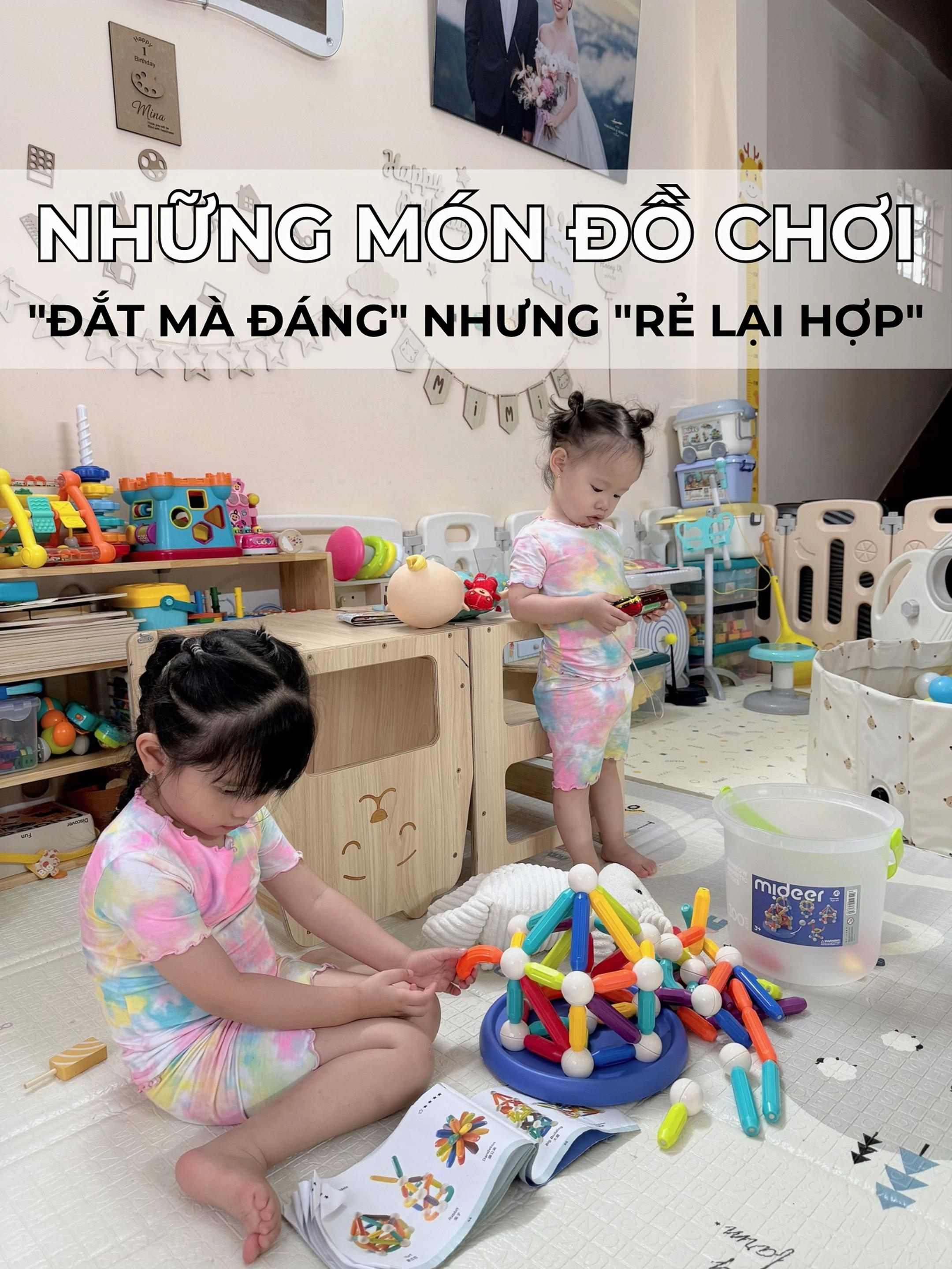Nói về món đồ chơi tư duy mà chị Hà tâm đắc nhất khi mua cho 2 bé, chị Hà tâm sự: "Các bộ lắp ghép nam châm, trò chơi logic, đồ chơi cát hay đường ray xe lửa.. giá thì cao nhưng con chơi được nhiều năm. Mỗi lần lại nghĩ ra cách mới, vừa rèn tư duy vừa sáng tạo".