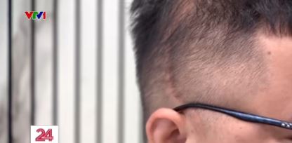 Hình ảnh vết thương trên đầu của một em học viên tại trung tâm. Ảnh: VTV1