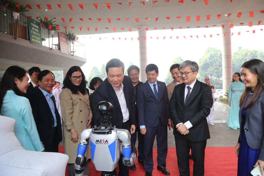 Đại biểu giao lưu với sản phẩm robot của Misa tại ngày hội.
