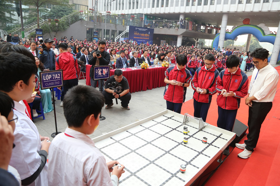 Bên cạnh đó, học sinh còn được tham gia trải nghiệm tại các gian hàng giới thiệu ứng dụng thực tế của trí tuệ nhân tạo, hệ thống quản trị trường học số, các sản phẩm STEM do chính học sinh chế tạo. Nhiều hoạt động thực hành như thí nghiệm STEM, trò chơi toán học, chế tạo và thử nghiệm tên lửa nước, khám phá kính thiên văn… thu hút sự quan tâm của đông đảo học sinh và giáo viên.