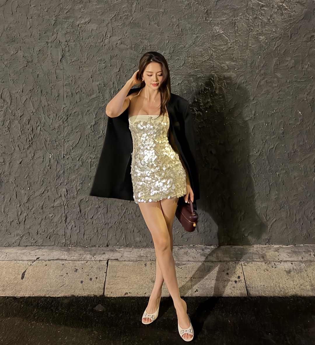 Bên cạnh đó, tại sự kiện, chị gái của Thiều Bảo Trâm cũng nhận nhiều lời khen khi diện outfit đơn giản nhưng tinh tế: áo trắng dáng ôm kết hợp cùng chân váy màu vàng nhẹ nhàng, tạo cảm giác thanh lịch nhưng vẫn trendy. Set đồ này không quá nổi bật giữa dàn khách mời, song lại ghi điểm ở sự chỉn chu, phù hợp với không khí nữ tính của sự kiện. Thiết kế ôm nhẹ giúp tôn lên vòng eo thon gọn, trong khi phần váy ngắn khéo léo khoe đôi chân dài - lợi thế hình thể vốn là “thương hiệu” của Thiều Bảo Trang.