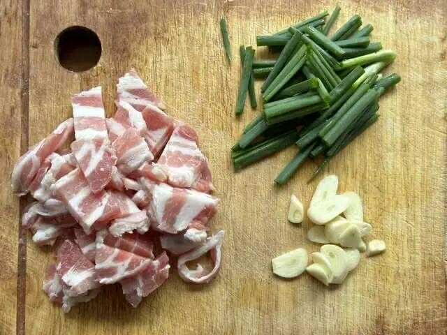 Bước 1: Thịt ba chỉ bạn rửa sạch sau đó thái thành miếng có độ dày khoảng 0.5cm. Hành lá rửa sạch, cắt thành đoạn ngắn. Tỏi bóc vỏ, thái lát. Nấm tràm tươi bạn rửa sạch rồi chần qua nước nước sôi. Nếu không có loại nấm này bạn có thể thay thế bằng các loại nấm khác như nấm hương rừng, nấm tùng nhung... Nên dùng loại nấm mọc tự nhiên thì món ăn sẽ thơm ngon, đậm đà hơn. Hành tây bóc bỏ lớp vỏ vàng nâu bên ngoài, rửa sạch rồi thái dạng sợi.