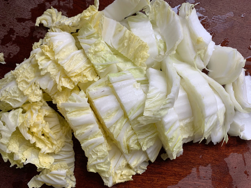 Bước 1: Rửa sạch rồi ngâm miếng một lúc cho đến khi mềm thì vớt ra, để ráo nước. Rửa sạch rau cải thảo rồi cắt thành từng đoạn ngắn. Gừng thái lát mỏng và tỏi đập dập, băm nhỏ.