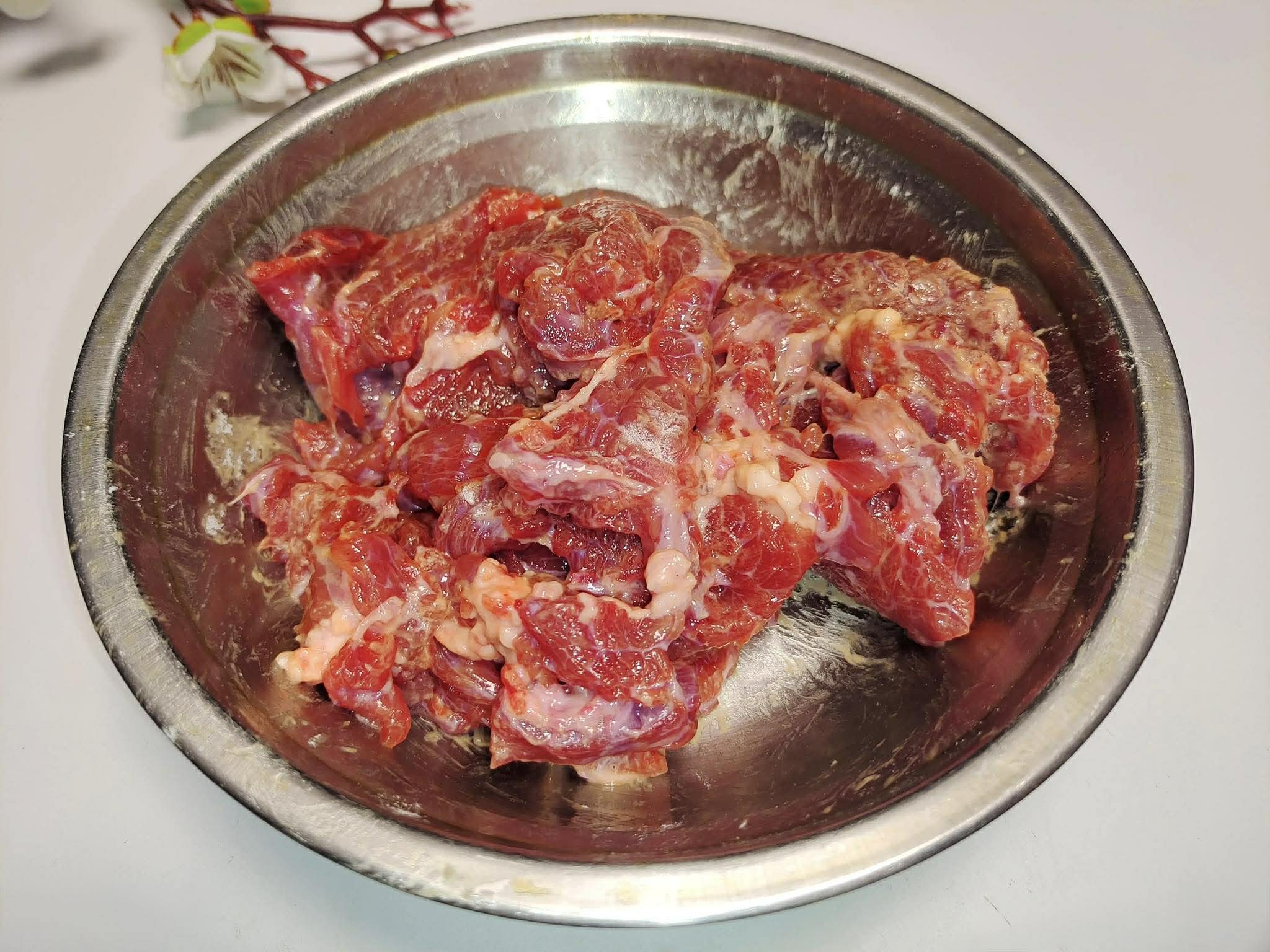 Để phần thịt bò trong món ăn này mềm ngon, bạn nên chọn loại thịt có vân mỡ, thịt vai hoặc thăn. Nếu không có những phần thịt ngon, đừng lo lắng. Bạn có thể thêm một ít bột nở hoặc tinh bột làm mềm thịt khi ướp bò, điều này sẽ giúp cải thiện đáng kể hương vị.