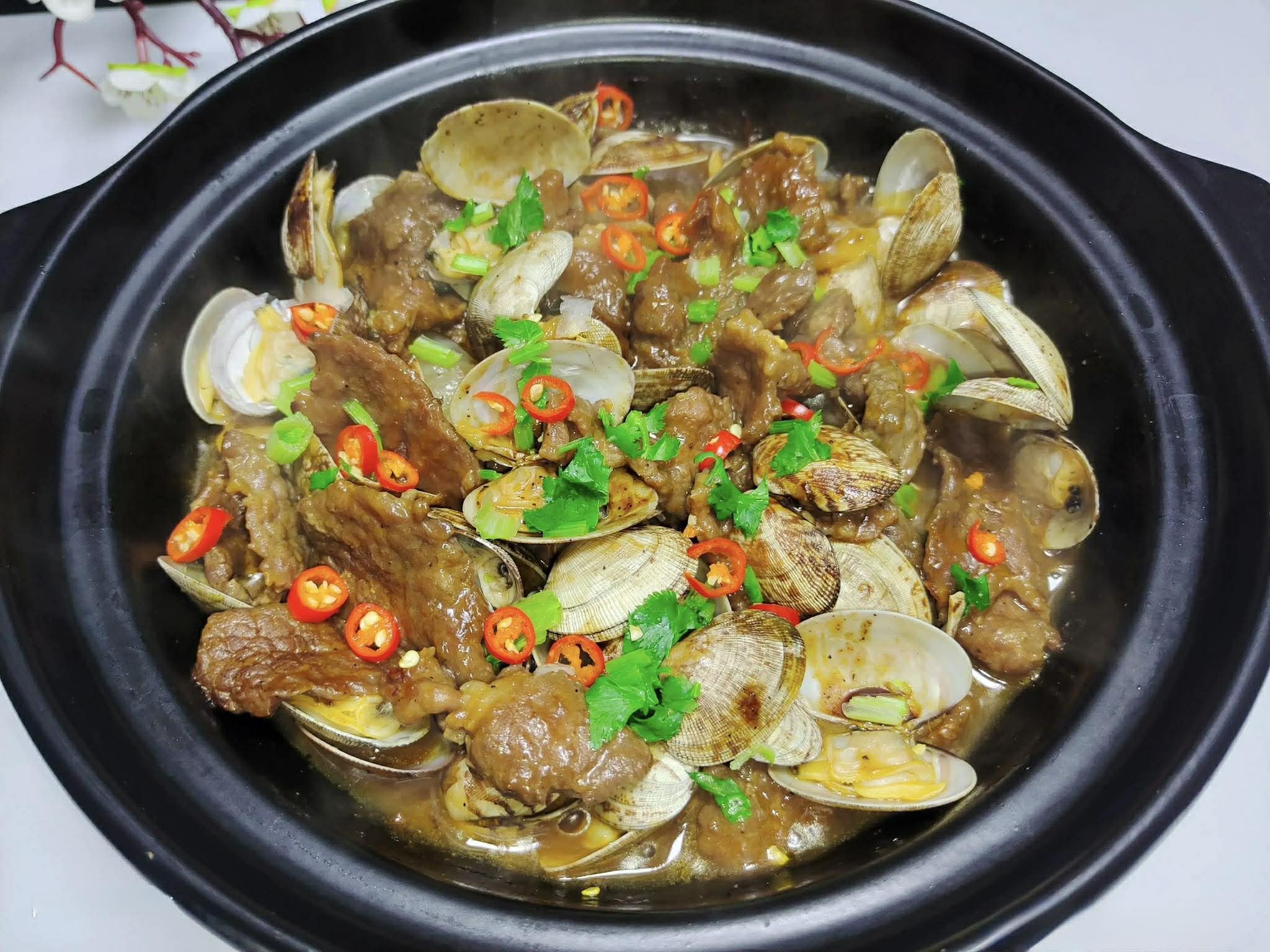 Không để mất thêm thời gian nữa, ngay dưới đây chúng tôi xin chia sẻ công thức món thịt bò hầm tiêu đen và ngao này. Ngay khi mở nắp, hương thơm nồng nàn sẽ lan tỏa, và mỗi miếng ăn đều mềm, mọng nước và bổ dưỡng.