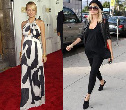 Trước khi trở thành người vợ, người mẹ, ngôi sao của The Simple Life từng là một hình tượng thời trang trong mắt giới trẻ với những bộ đồ hợp thời và đắt tiền. Khi mang bầu đứa con đầu lòng, hình ảnh của Nicole đã dịu dàng chín chắn hơn nhiều. Chọn chiếc váy dài của hãng Roberto Cavalli trong đêm Fashion Rock, trông cô vẫn xinh đẹp thanh mảnh. Còn trên đường phố Los Angeles, Nicole Nicole tỏ ra là một bà mẹ… sành điệu với nguyên một cây đen.